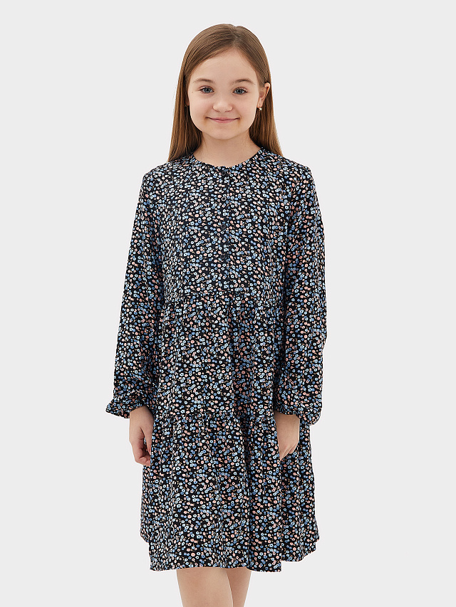 Красивое детское платье для девочек в классическом А-силуэте с отрезными воланами. Эта модель из вискозы сочетает в себе изящество и шарм, создавая идеальную гармонию стиля. По переду платья расположена застежка-планка, состоящая из четырех элегантных пуговиц. Горловина платья выполнена в форме круглого выреза. Длинные втачные рукава придают платью элегантность и изысканность. Такое платье станет идеальным выбором на каждый день и для праздников. Оно подчеркнет индивидуальность вашей девочки, а его оригинальный дизайн не оставит равнодушными окружающих. Рекомендуем!