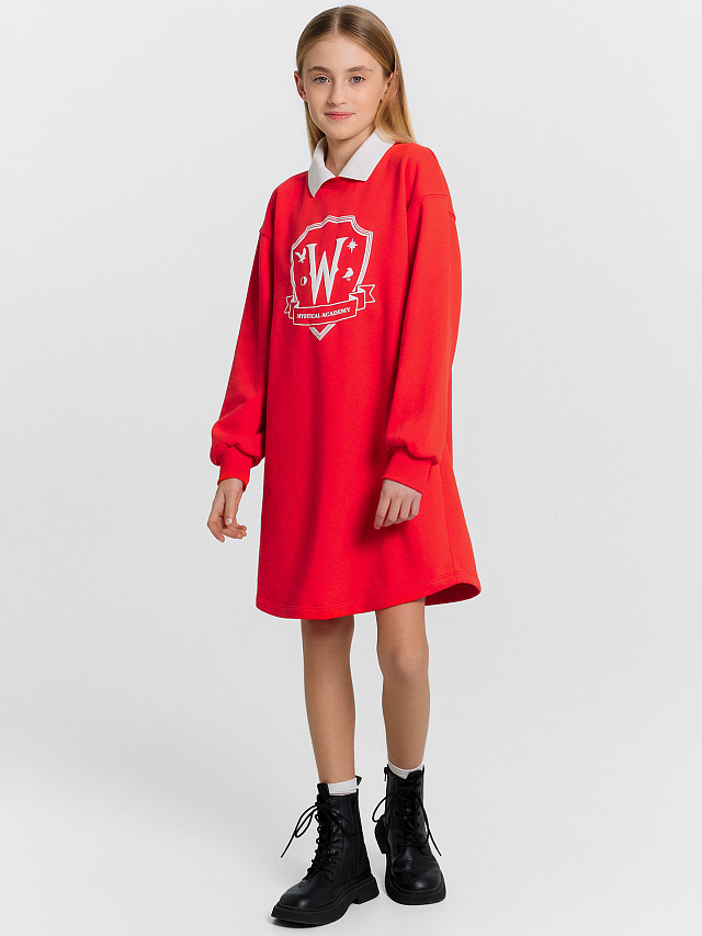 Платье для девочек красное с надписью "Mystical academy"
