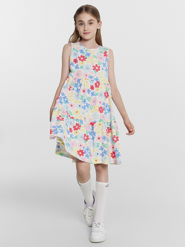 Стильное детское многоярусное платье без рукавов для девочек из легкого 100% хлопка. Длина выше колен. Верхняя часть слегка приталенная, нижняя – с воланами. Горловина круглой формы. Стильное легкое платьице для прогулок и отдыха. Отличный выбор на жаркий летний сезон. Широкий размерный ряд. Модель представлена в нескольких расцветках. Рекомендуем!