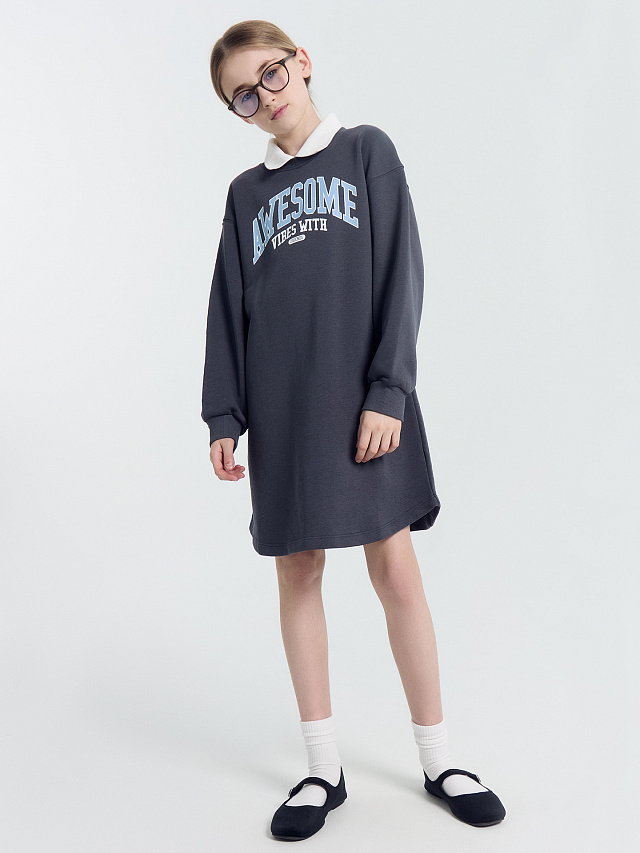 Платье для девочек серое с печатью