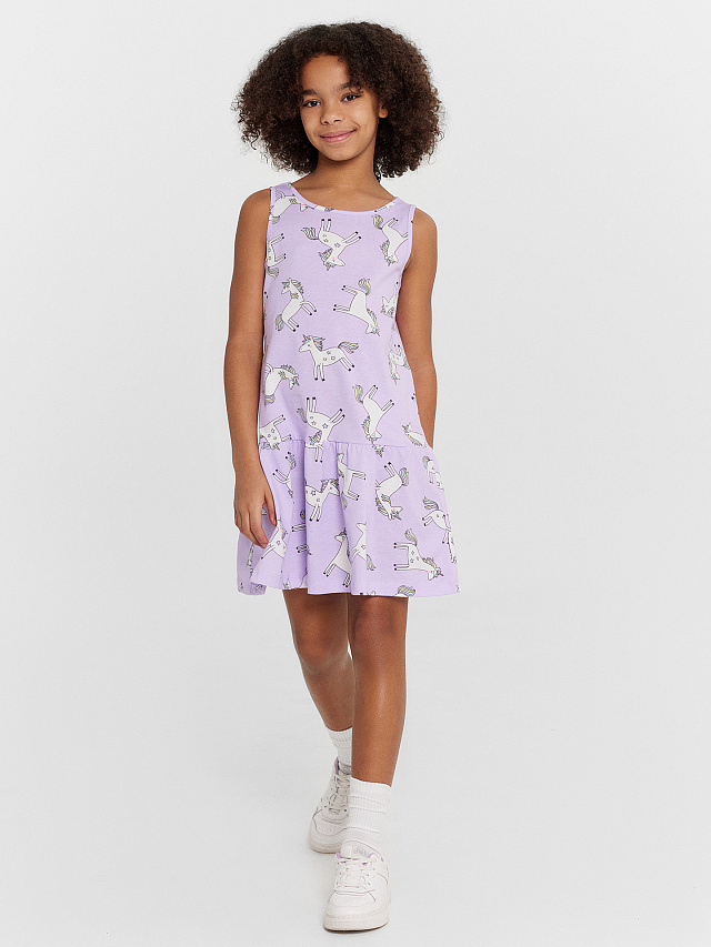 Представляем очаровательное платье для девочек А-силуэта с изысканной оборкой на юбке. Длина платья немного выше колена, что придает ему милый и нежный вид. Круглая горловина и аккуратно обработанный подгибкой низ изделия завершают гармоничный образ. Модель выполнена из высококачественной хлопковой кулирки, что гарантирует комфорт и мягкость на протяжении всего дня. Это платье станет идеальным выбором для повседневных прогулок или праздничных мероприятий, добавляя нотку элегантности и стиля в гардероб каждой девочки. Добавьте это платье в гардероб вашей маленькой модницы, и она будет выглядеть восхитительно в любой ситуации!