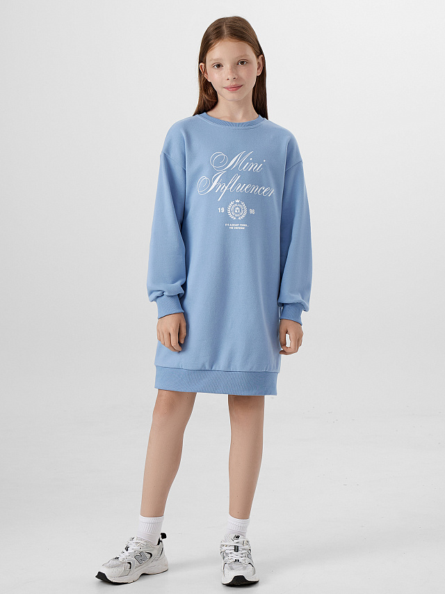 Платье для девочки голубое с надписью "mini influencer"