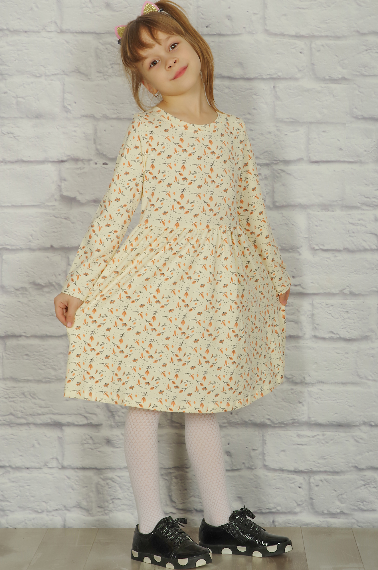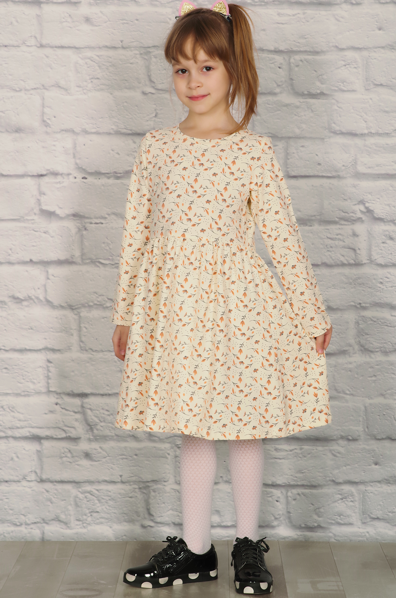 Нежное, симпатичное хлопковое платье для девочки. Модель с длинным рукавом и отрезной пышной юбкой. Отличный вариант на каждый день! Ткань мягкая, эластичная, приятная к телу кулирка с лайкрой в качестве пенье, с набивным рисунком.