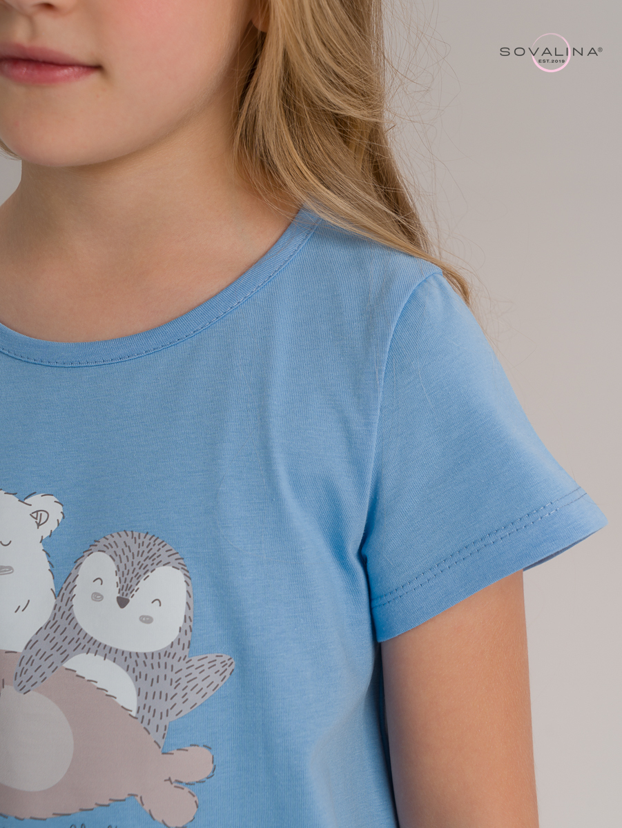 Трикотажное платье-футболка для девочек ТМ SOVAlina. Благодаря натуральному составу из хлопка, этот мягкий материал гарантирует гипоаллегенность и позволяет коже дышать, что особенно важно для детей. Такое легкое и широкое домашнее платье удобно не только осенью или зимой в отопительный сезон, но и весной, летом — в любое время года вашему ребенку будет уютно. Прямой фасон подарит удобство и комфорт во время домашнего отдыха, а милый принт добавит настроения девочке. Это платье будет уместно и для повседневного использования. Идеально подойдет и на выход, и для дома. Свободный крой платья подходит для разных типов фигуры и не стесняет движений. Также, это отличный подарок дочке, внучке или крестнице. Обращаем Ваше внимание, фото выполнено в условиях студийного освещения, при естественном свете цвета могут незначительно отличаться. 100% хлопок