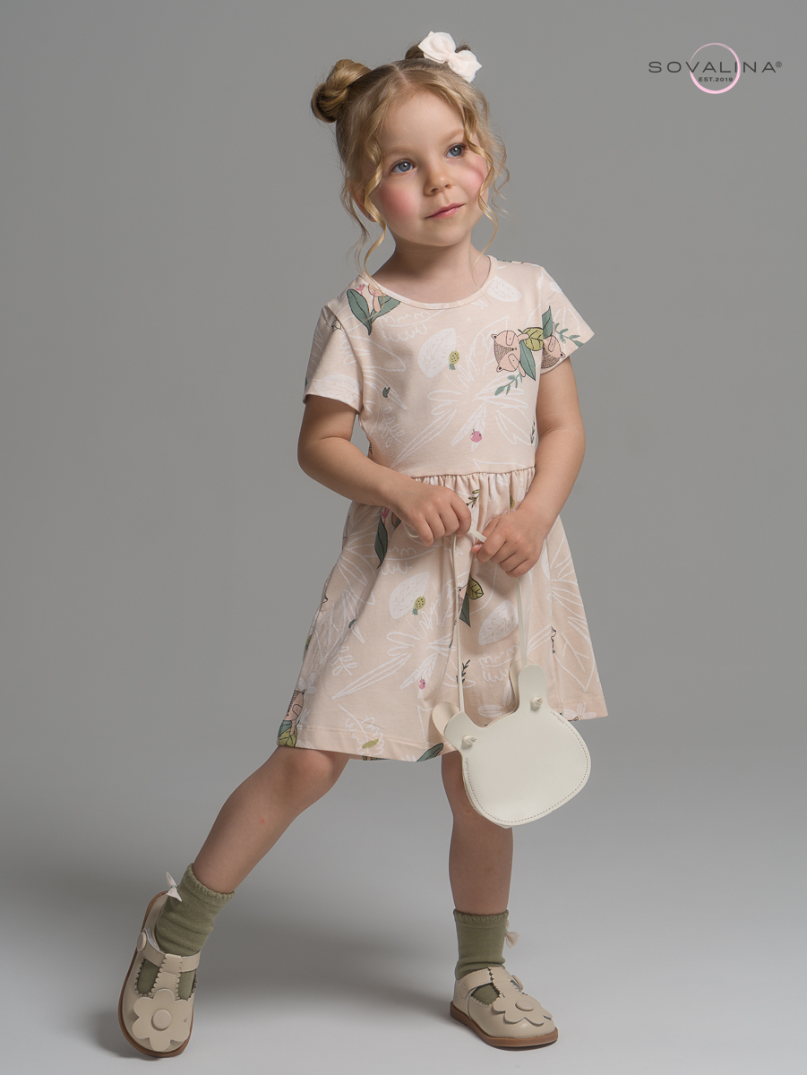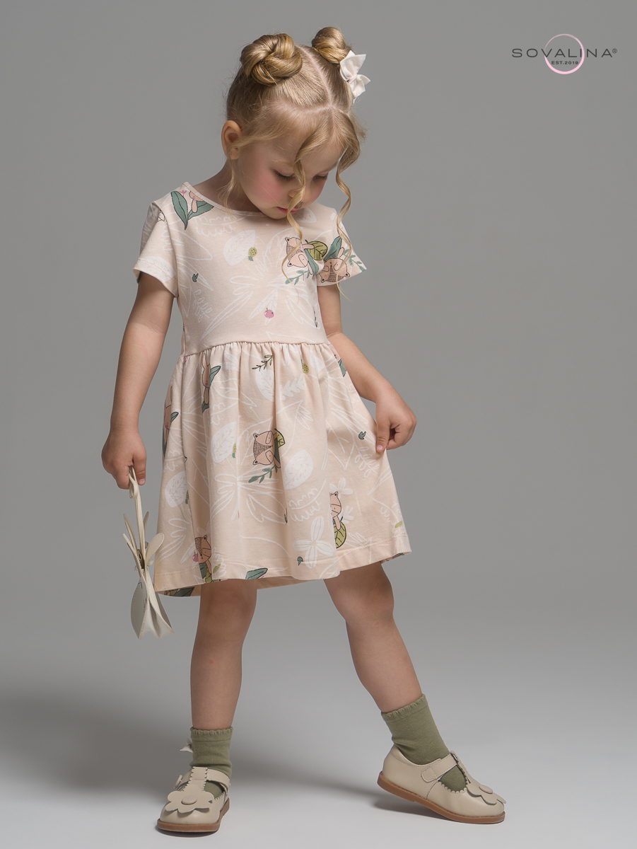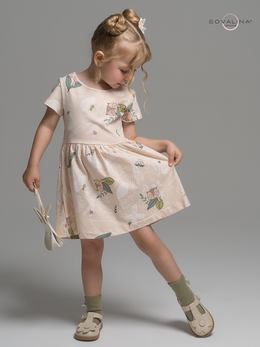 Трикотажное платье для девочки с коротким рукавом от бренда SOVAlina.