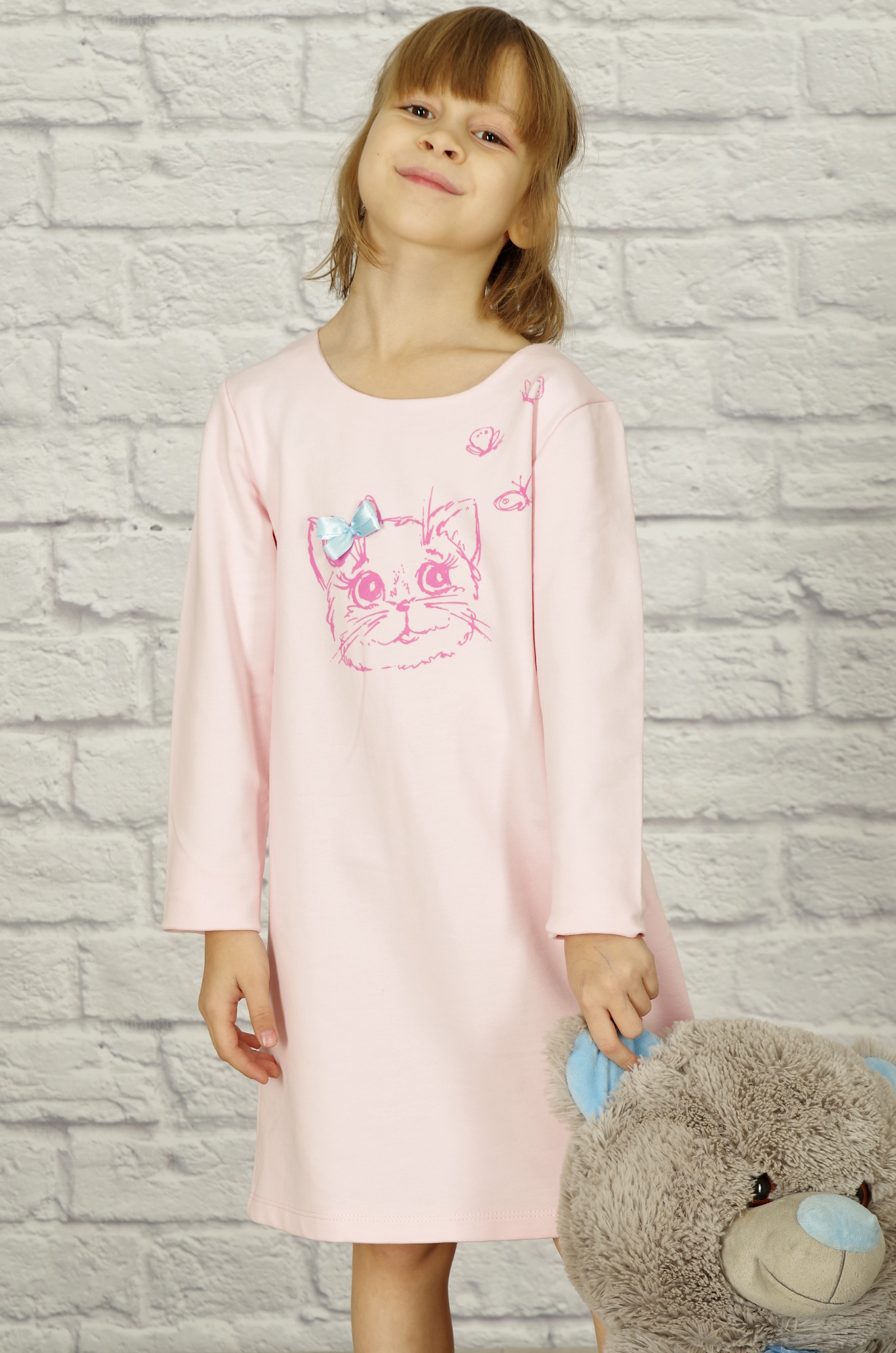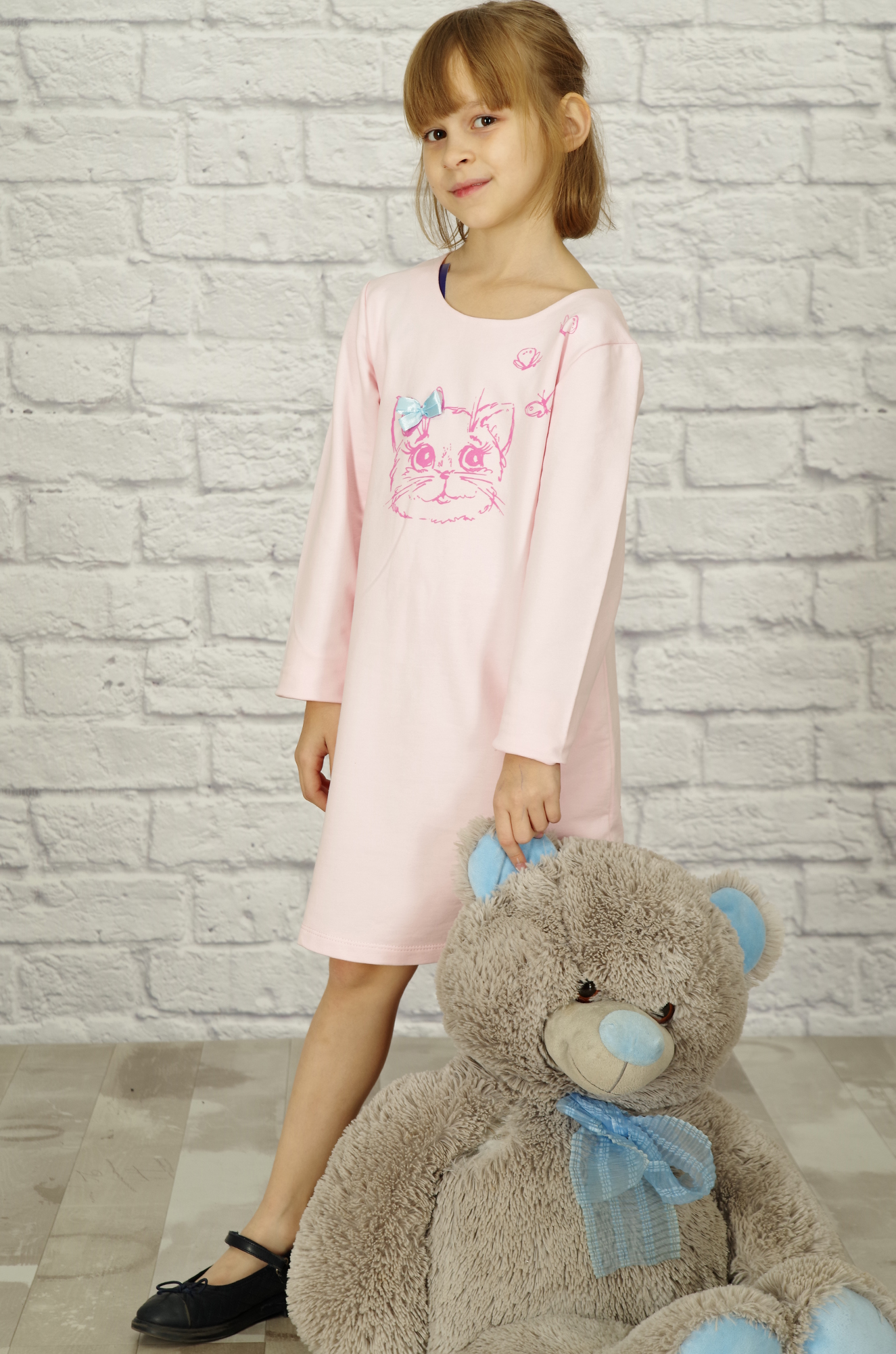Стильное платье для девочки трапециевидного кроя, сзади застёжка- кнопки, на полочке печатный принт.