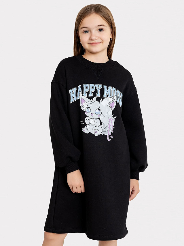 Платье-свитшот для девочек черное с принтом
