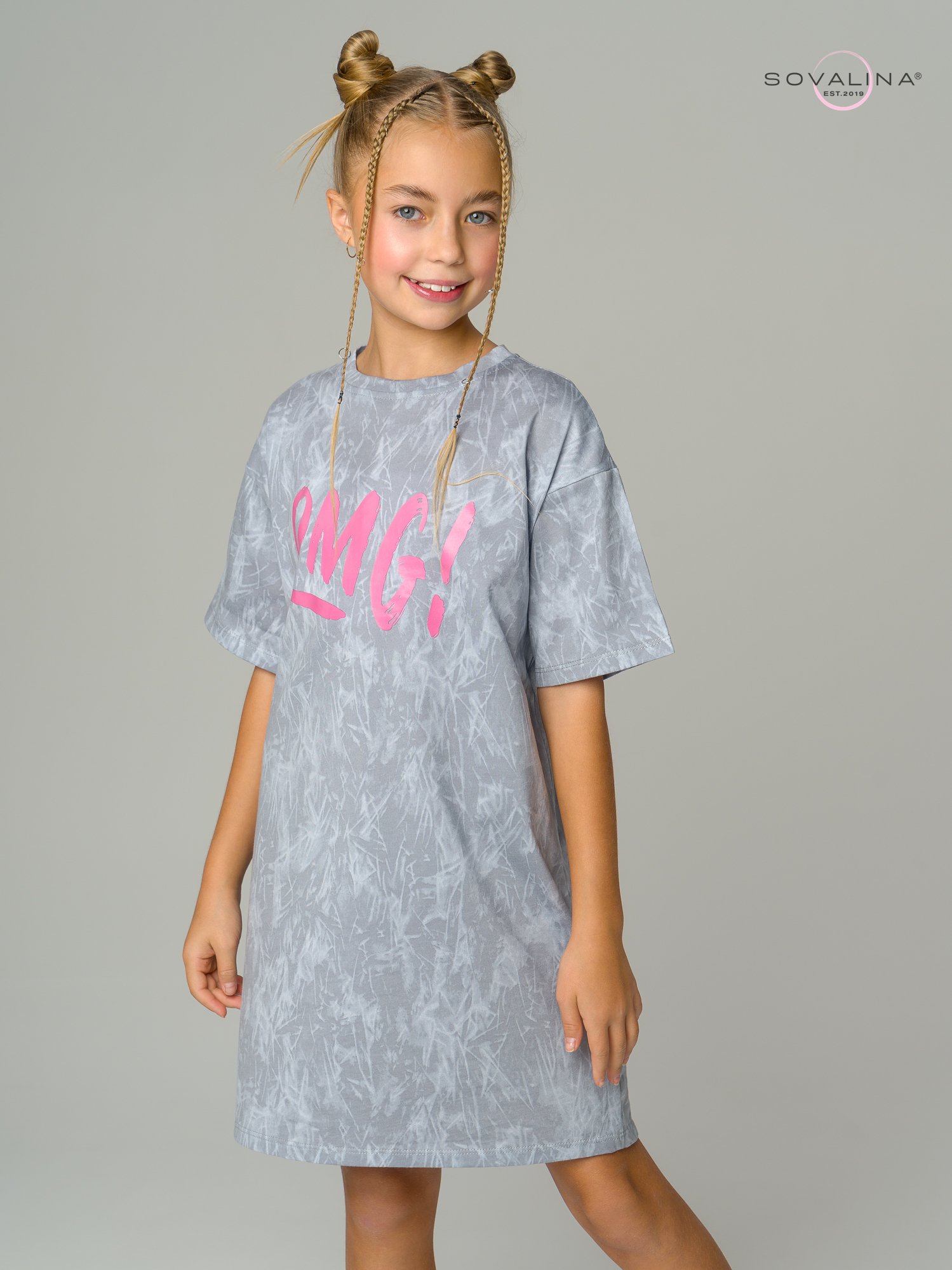 Трикотажное платье-футболка для девушек подростков и совсем юных девочек ТМ SOVAlina. Благодаря натуральному составу из хлопка, этот мягкий материал гарантирует гипоаллегенность и позволяет коже дышать, что особенно важно для детей. Такое легкое и широкое платье удобно не только осенью или зимой в отопительный сезон, но и весной, летом — в любое время года вашему ребенку будет уютно. Прямой фасон оверсайз создает эффектный современный образ и дарит комфорт даже во время длительных мероприятий, а актуальный принт добавит оригинальности. Повседневный яркий наряд будет уместен для любого случая. Идеально подойдет и на выход, и для дома. Свободный широкий крой платья подходит для разных типов фигуры и не стесняет движений. Также, это отличный подарок дочке, внучке или крестнице. Обращаем Ваше внимание, фото выполнено в условиях студийного освещения, при естественном свете цвета могут незначительно отличаться. 100% хлопок