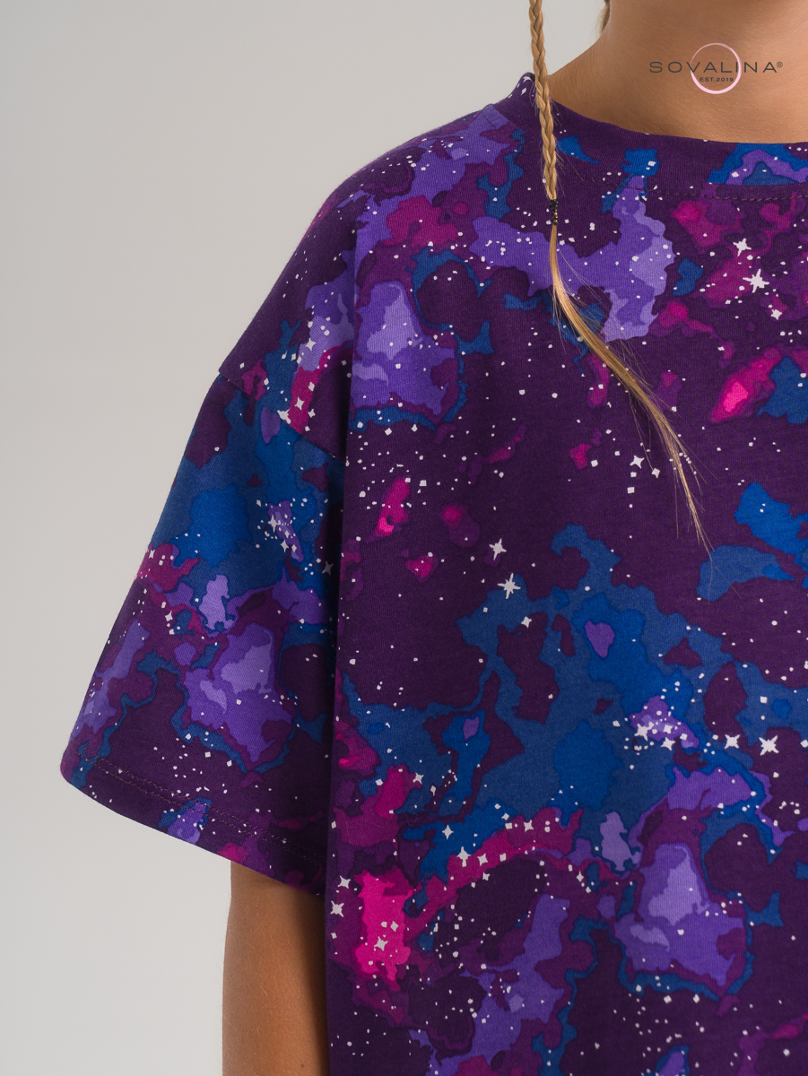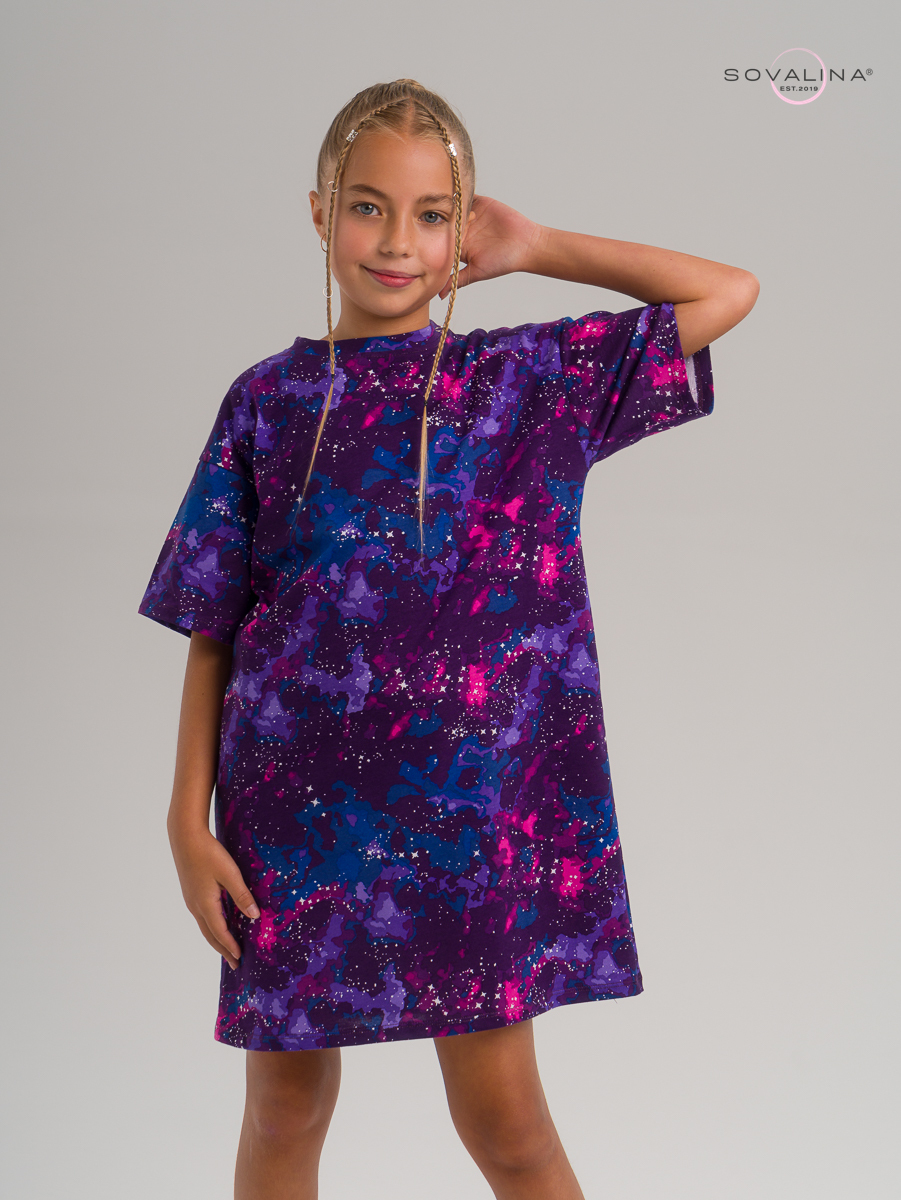 Трикотажное платье-футболка для девушек подростков и совсем юных девочек ТМ SOVAlina. Благодаря натуральному составу из хлопка, этот мягкий материал гарантирует гипоаллегенность и позволяет коже дышать, что особенно важно для детей. Такое легкое и широкое платье удобно не только осенью или зимой в отопительный сезон, но и весной, летом — в любое время года вашему ребенку будет уютно. Прямой фасон оверсайз создает эффектный современный образ и дарит комфорт даже во время длительных мероприятий, а актуальный принт добавит оригинальности. Повседневный яркий наряд будет уместен для любого случая. Идеально подойдет и на выход, и для дома. Свободный широкий крой платья подходит для разных типов фигуры и не стесняет движений. Также, это отличный подарок дочке, внучке или крестнице. Обращаем Ваше внимание, фото выполнено в условиях студийного освещ 100% хлопок