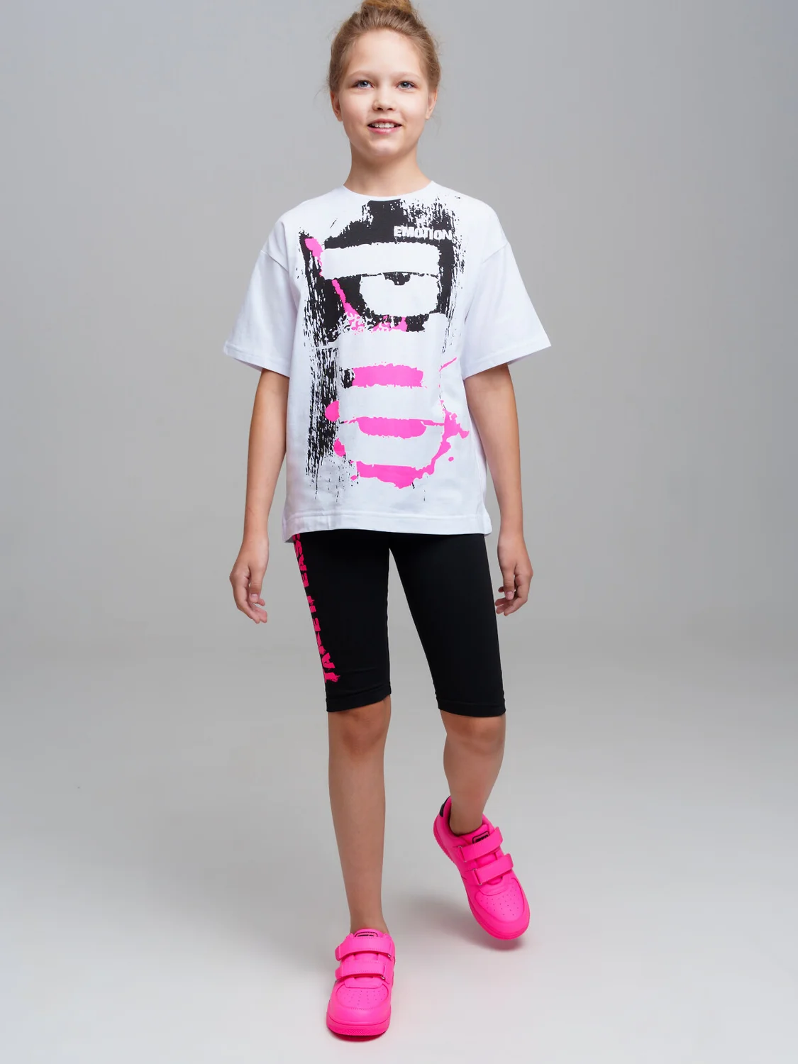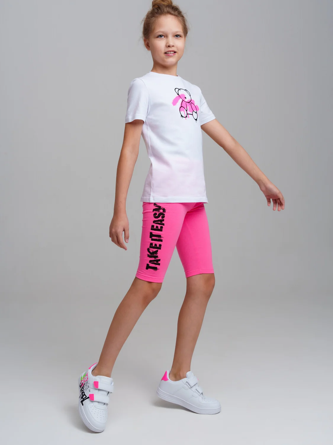 Набор леггинс для девочки подростка. Леггинсы укороченные из качественного и приятного на ощупь трикотажа джерси. Высокое содержание хлопка. Благодаря наличию эластана в составе ткани изделие держит форму и меньше мнется. По поясу резинка. Модель выполнена из качественного и приятного на ощупь трикотажа.