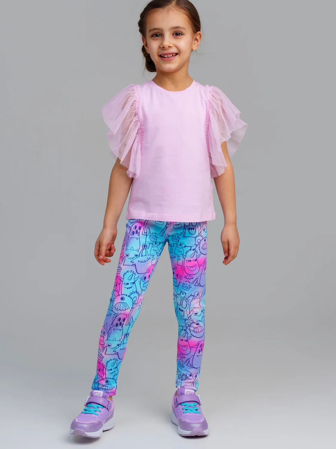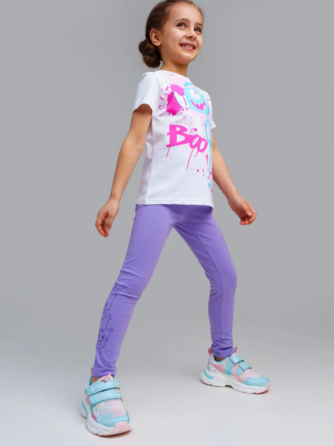 Набор детских леггинс для девочки. Леггинсы из качественного и приятного на ощупь трикотажа джерси. Высокое содержание хлопка 95%. Благодаря наличию эластана в составе ткани изделие держит форму и меньше мнется. По поясу резинка. Модель выполнена из качественного и приятного на ощупь трикотажа.