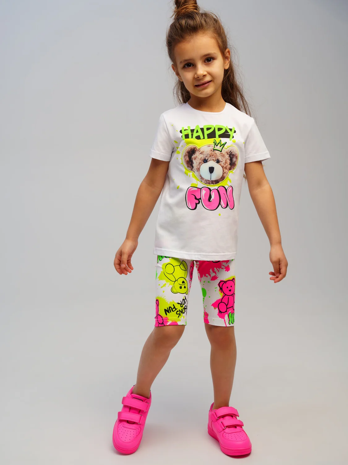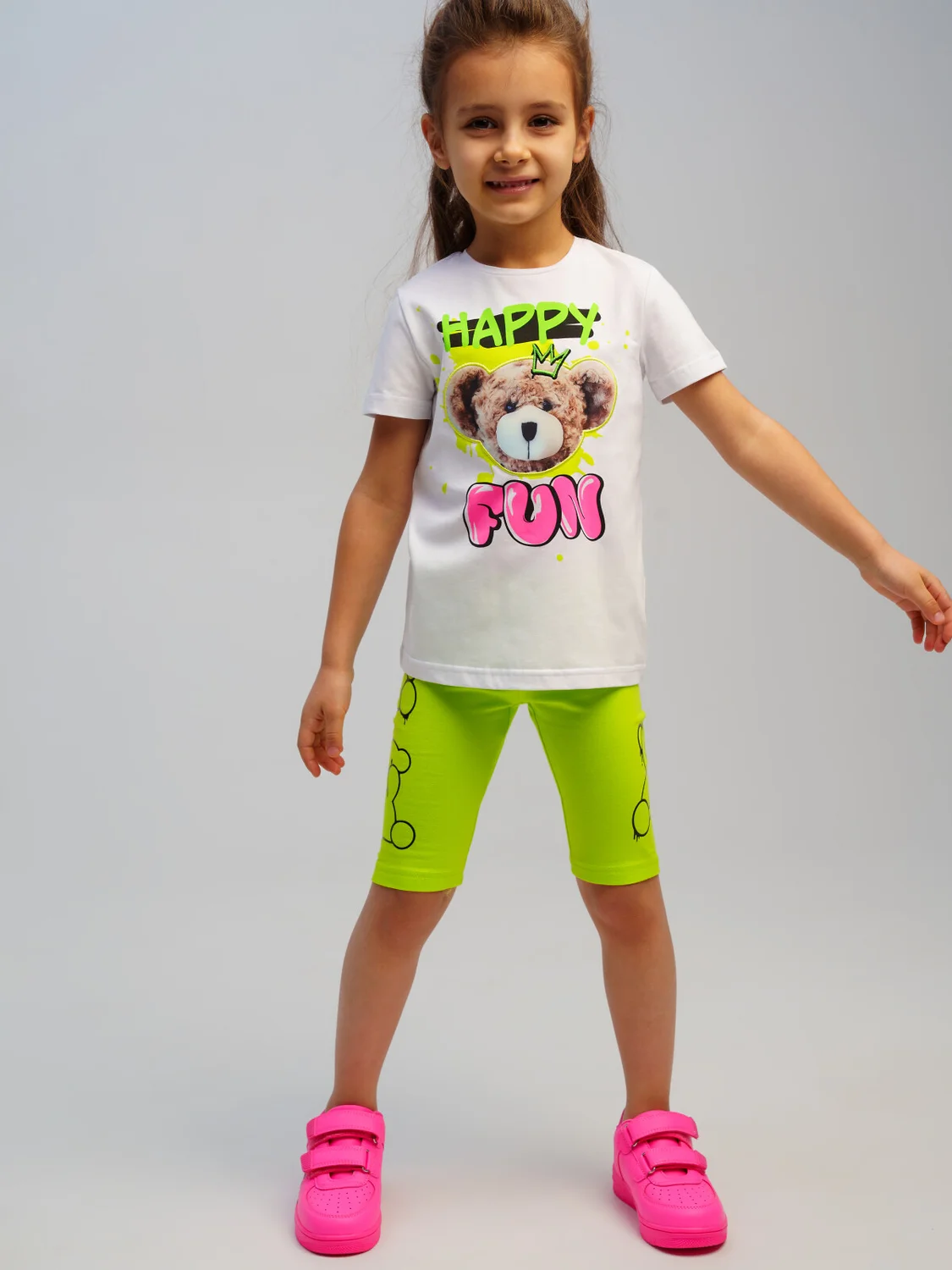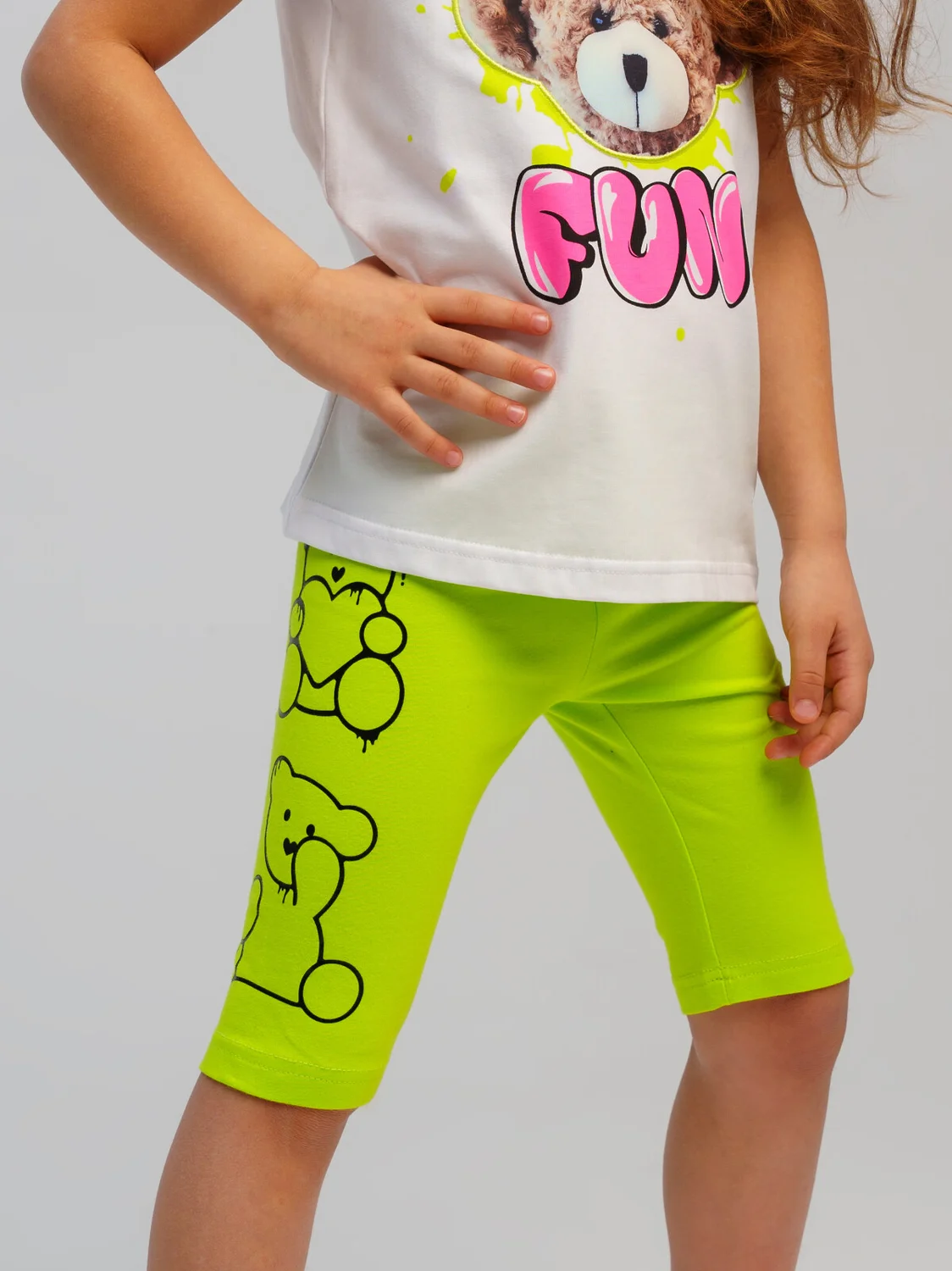 Набор детских леггинс для девочки. Леггинсы укороченные из качественного и приятного на ощупь трикотажа джерси. Высокое содержание хлопка. Благодаря наличию эластана в составе ткани изделие держит форму и меньше мнется. По поясу резинка. Модель выполнена из качественного и приятного на ощупь трикотажа.