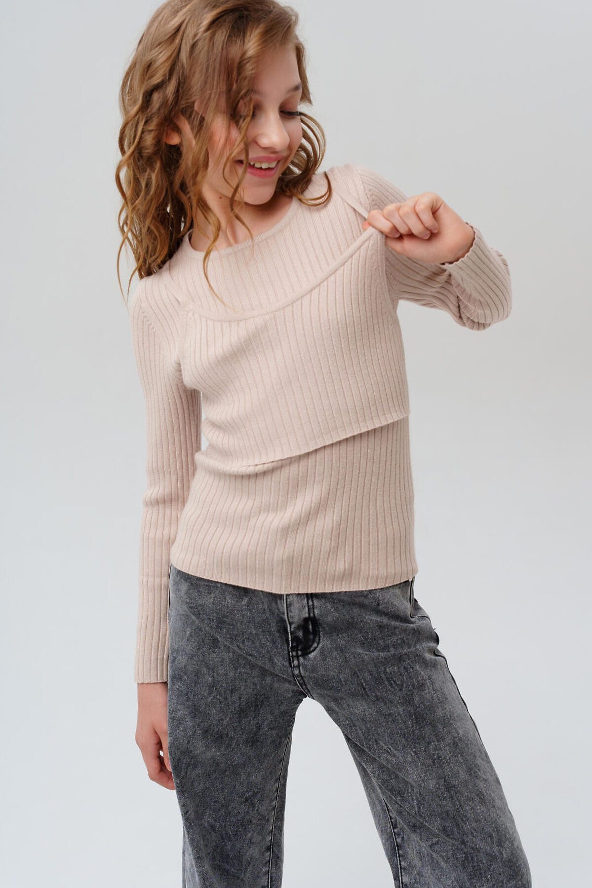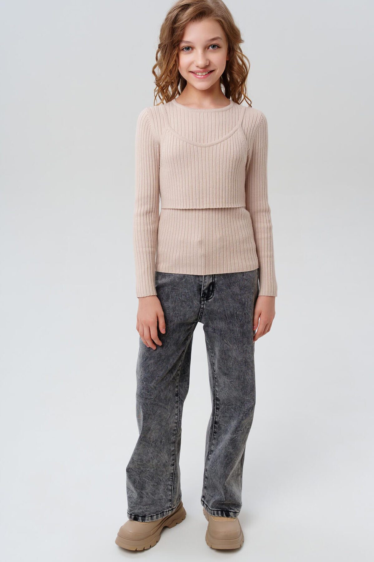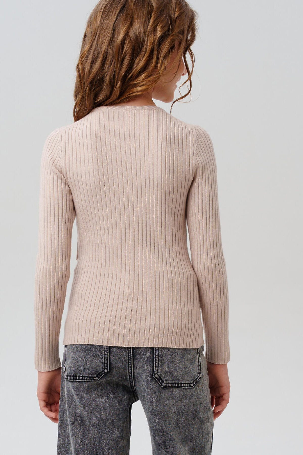 Бежевый трикотажный джемпер в рубчик для девочки подростка от PlayToday — универсальная базовая вещь для школы, прогулок и повседневного гардероба. Джемпер выполнен из мягкой, эластичной пряжи, приятной к телу и сохраняющей форму после стирки. Актуальный дизайн с декоративной вставкой спереди делает образ более интересным и стильным.