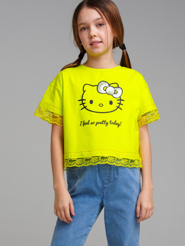 Укороченная футболка oversize из качественного и приятного на ощупь трикотажа джерси. Высокое содержание хлопка 95%. Благодаря наличию эластана в составе ткани изделие проще в уходе и держит форму. Рукава и низ изделия декорированы кружевом.