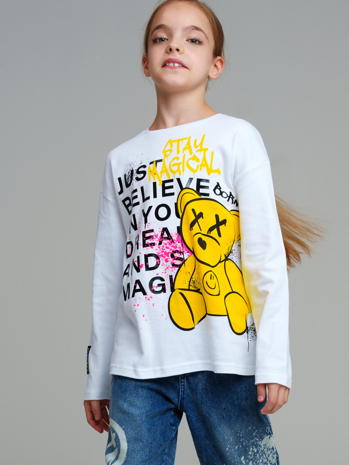 Футболка с длинным рукавом для девочки подростка. Модель из качественного и приятного на ощупь трикотажа джерси. Лонгслив с высоким содержанием хлопка 95%. Благодаря наличию эластана в составе ткани изделие проще в уходе и держит форму. Модель из капсульной коллекции DIGITAL TRANSFORM (ДИДЖИТАЛ ТРАНСФОРМ). Соберите полный образ в едином стиле!