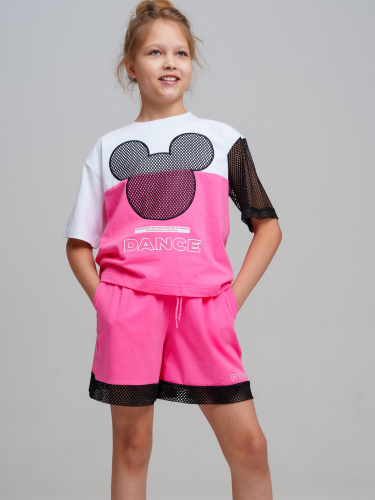 Костюм для девочки подростка. Футболка оверсайз, шорты из эластичного и приятного на ощупь трикотажа джерси. Шорты на резинке со шнурком. Высокое содержание хлопка. Декор из сетки. Модель выполнена из качественного и приятного на ощупь трикотажа.