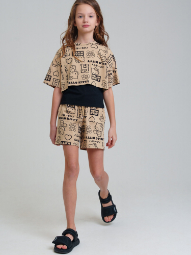 Костюм для девочки подростка. Укороченная футболка, майка, шорты из эластичного и приятного на ощупь трикотажа джерси. Шорты на резинке со шнурком. Функциональные боковые карманы. Высокое содержание хлопка 95%. Благодаря наличию эластана в составе ткани изделие держит форму и меньше мнется. Модель выполнена из качественного и приятного на ощупь трикотажа.
