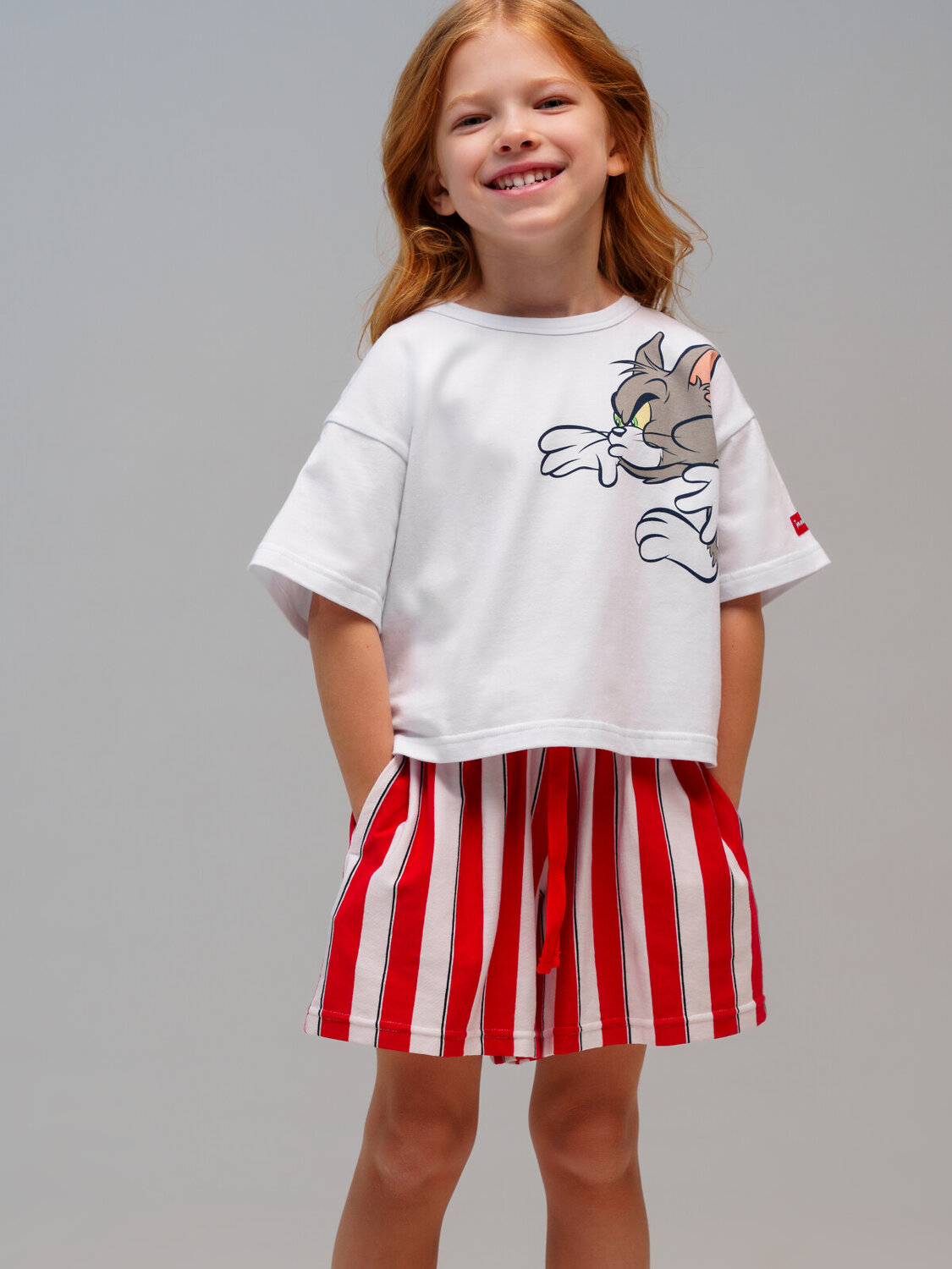 Костюм детский для девочки. Футболка оверсайз, шорты из эластичного и приятного на ощупь трикотажа джерси. Шорты на резинке со шнурком. Высокое содержание хлопка 95%. Благодаря наличию эластана в составе ткани изделие держит форму и меньше мнется. Модель выполнена из качественного и приятного на ощупь трикотажа.