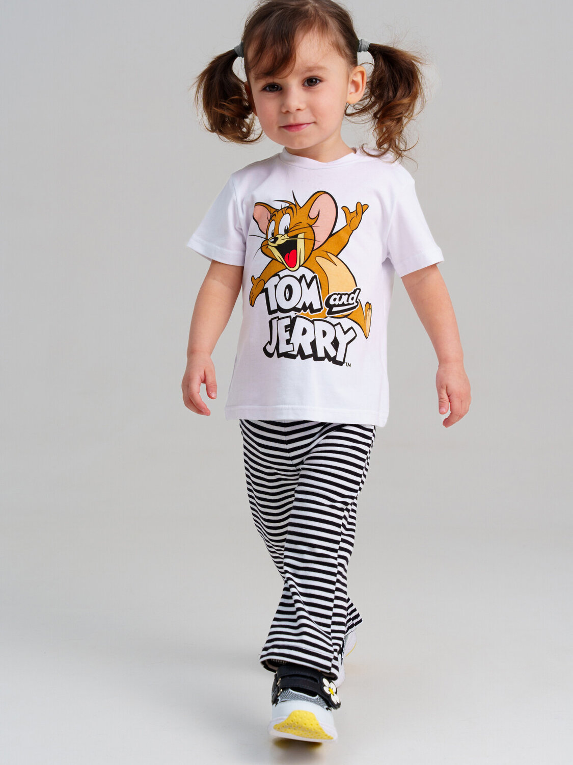 Костюм детский для девочки. Футболка и леггинсы классической посадки. Костюм из качественного и приятного на ощупь трикотажа джерси с высоким содержанием хлопка 95%. Благодаря наличию эластана в составе ткани изделие проще в уходе и держит форму. Футболка с застежкой на кнопки. Леггинсы на резинке. Модель выполнена из качественного и приятного на ощупь трикотажа.