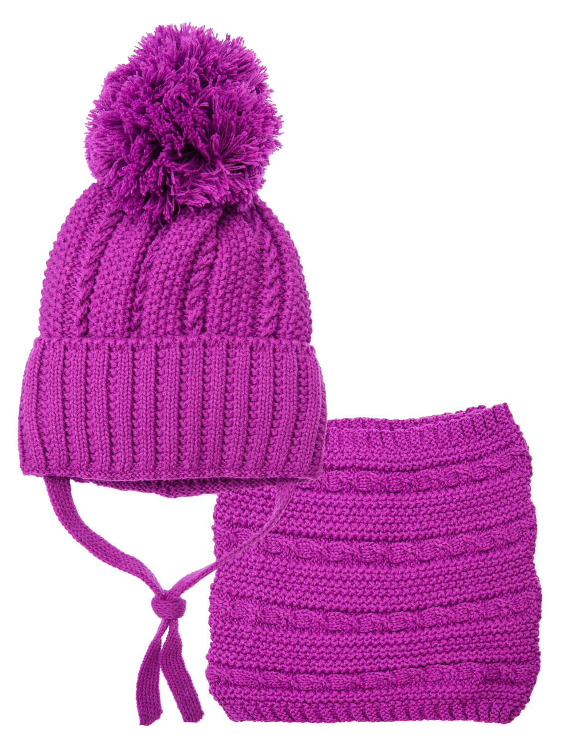 Утепленная шапка из вязаного трикотажа. Пряжа из акрила: легкая, теплая, гипоаллергенная. Ажурная вязка. Утеплена синтепоном. Подкладка из мягкого трикотажа с высоким содержанием хлопка 95%. Снуд в комплекте.