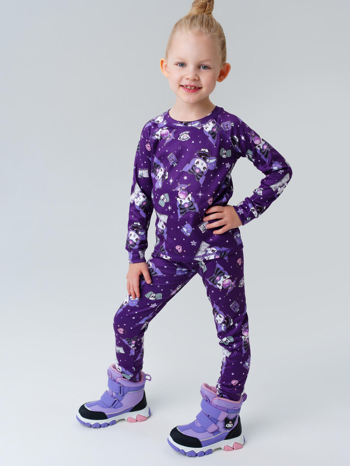 Детское термобельё Куроми для девочки от PlayToday — идеальный первый слой для холодного сезона. Комплект из кофты и брюк с начёсом сохраняет тепло тела, эффективно отводит влагу и быстро сохнет. Мягкий эластичный материал не сковывает движений и обеспечивает комфортную посадку, а плоские швы не натирают даже при длительной носке. Благодаря удобному крою и нежной к телу ткани, термобельё отлично подходит как для прогулок на свежем воздухе, так и для активных занятий спортом.