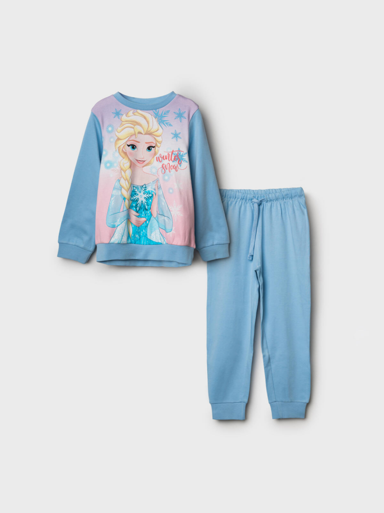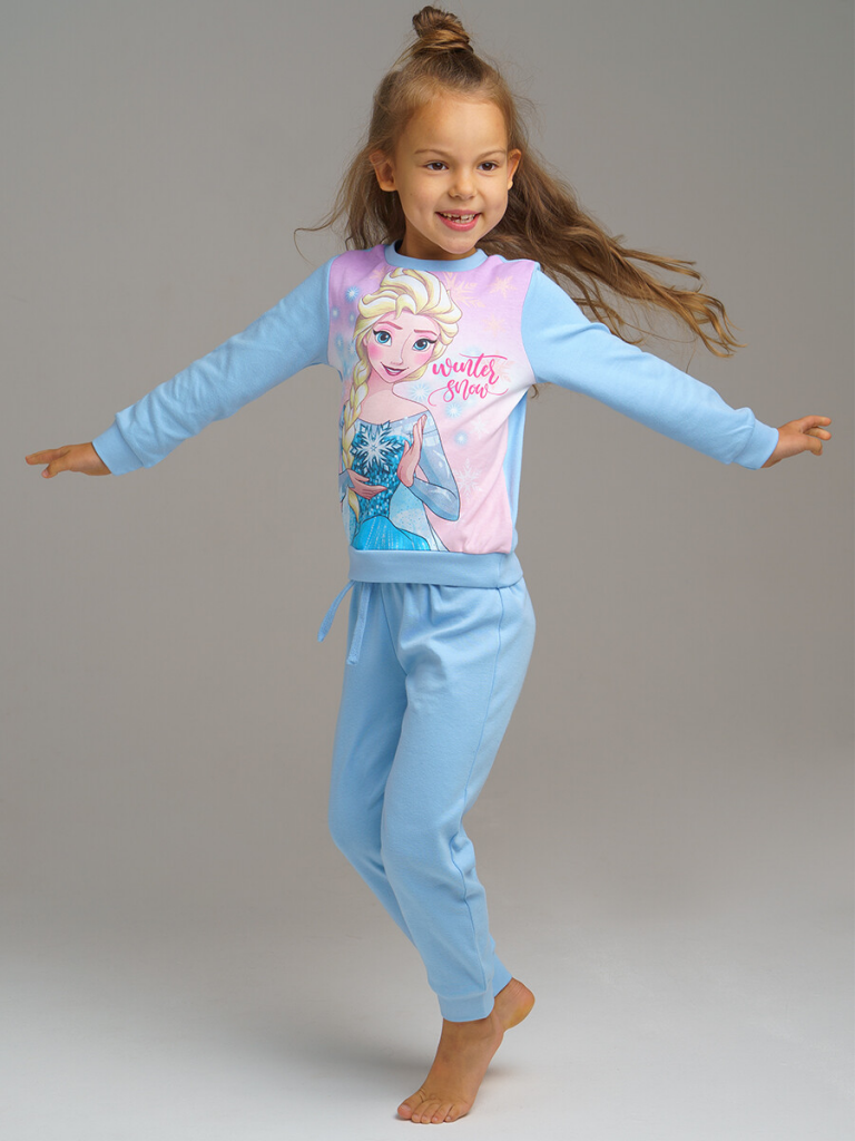 Комплект: толстовка и брюки с принтом Холодное сердце. Приятная ткань с высоким содержанием хлопка. Износостойкий принт. Горловина, манжеты, нижняя кромка брючин в эластичный рубчик. 100% хлопок.