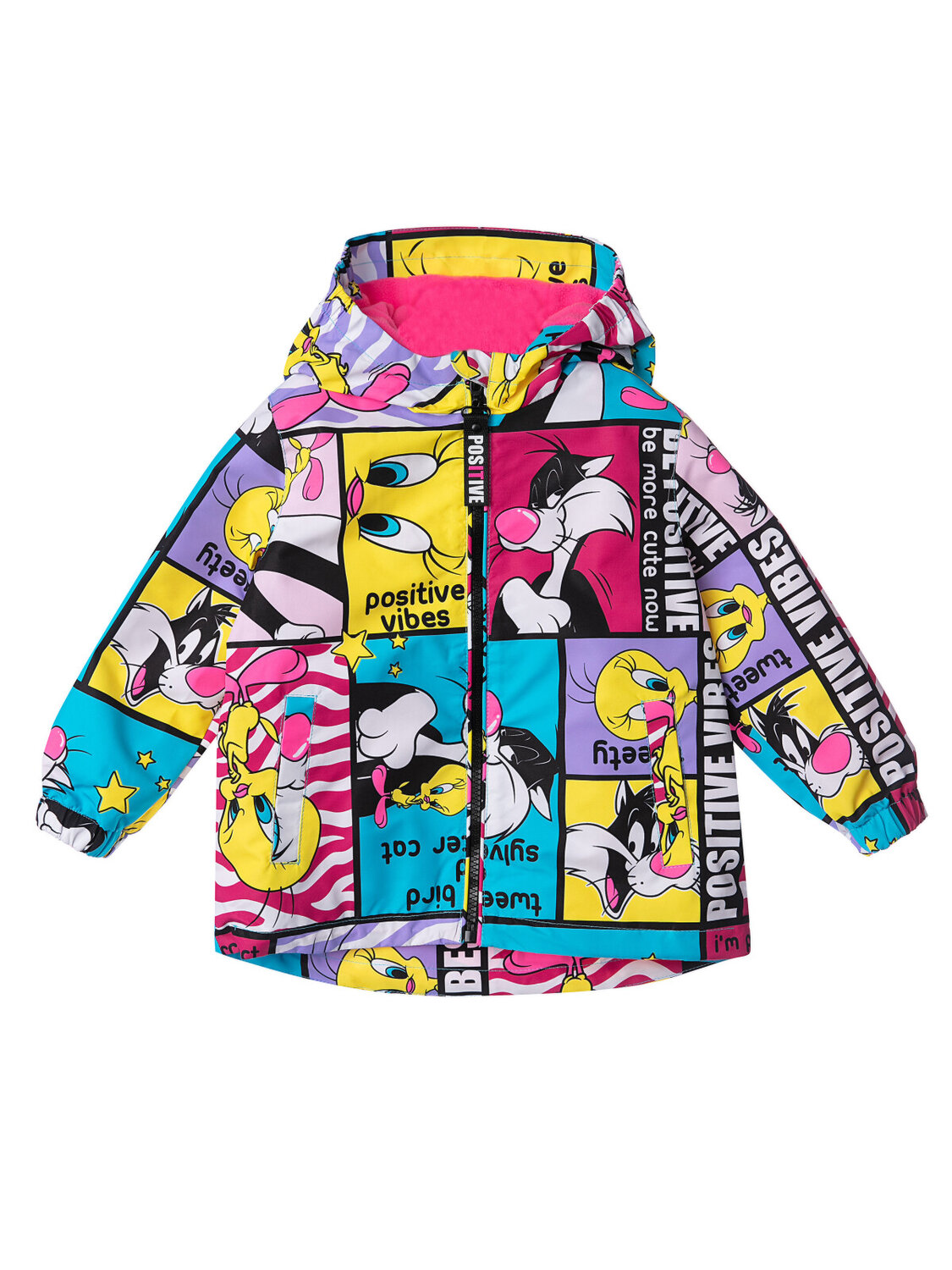 Эластичная резинка по краю рукава. Два боковых кармана на липучке. Внутренний карман со строкой для имени и телефона. Текстильный клапан для защиты подбородка при застегивании молнии. Светоотражающие элементы.