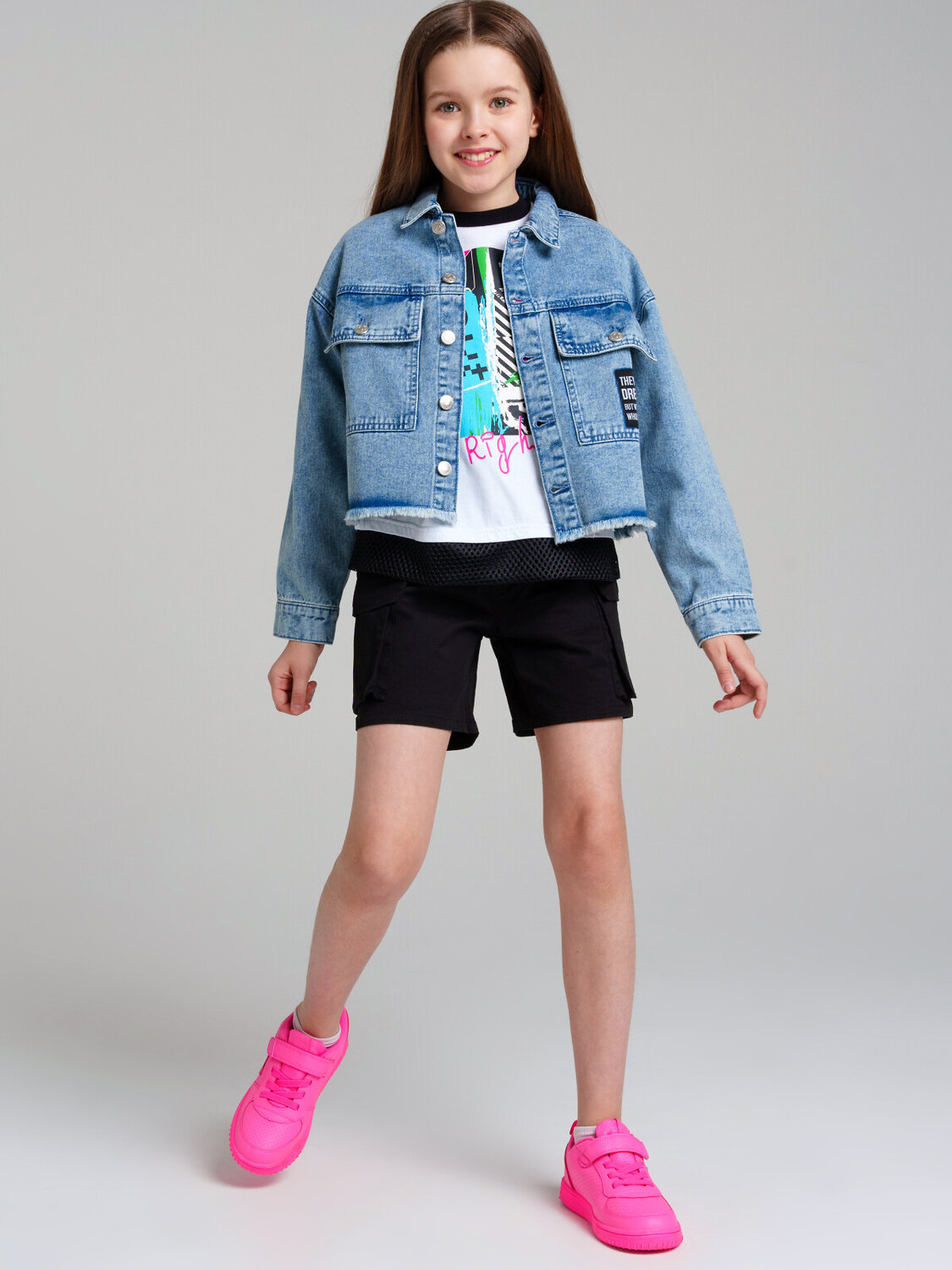Куртка джинсовая oversize из эластичного денима. Свободная посадка. Застежка на болты. Функциональные карманы. Рваный край.