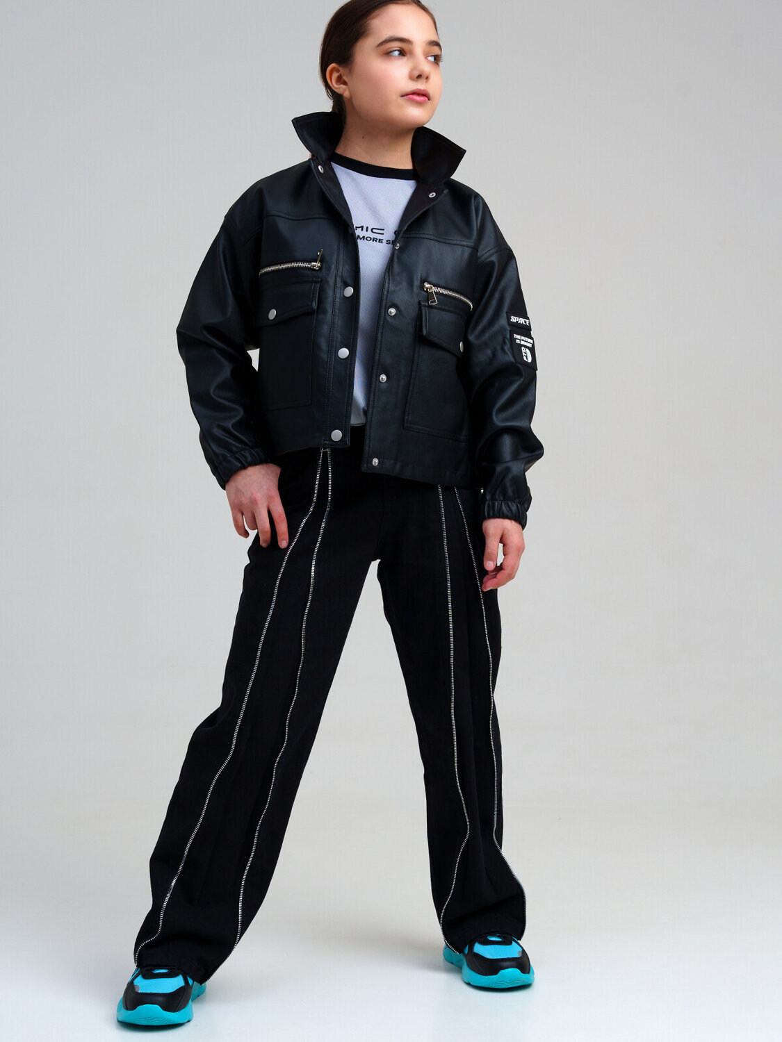 Куртка из экокожи для девочки подростка. Температурный режим до +10°С*. Линия температурного режима X-LIGHT. Идеально подходит для весны и теплой осени. Водоотталкивающее и ветронепродуваемое покрытие. Гладкая подкладка максимально комфортна для надевания изделия. Застежка на кнопки. Карманы на кнопках. Манжеты на резинке. *Пожалуйста, обратите внимание, что указанный температурный режим является приблизительным и зависит от многих факторов, таких, как возраст, физическое состояние, уровень активности ребенка и количество слоев одежды. Время, проведенное на открытом воздухе, и погодные условия, такие как холодный ветер, могут повлиять на тепловые характеристики изделия. Убедитесь, что защищены от холода голова, руки и ноги.