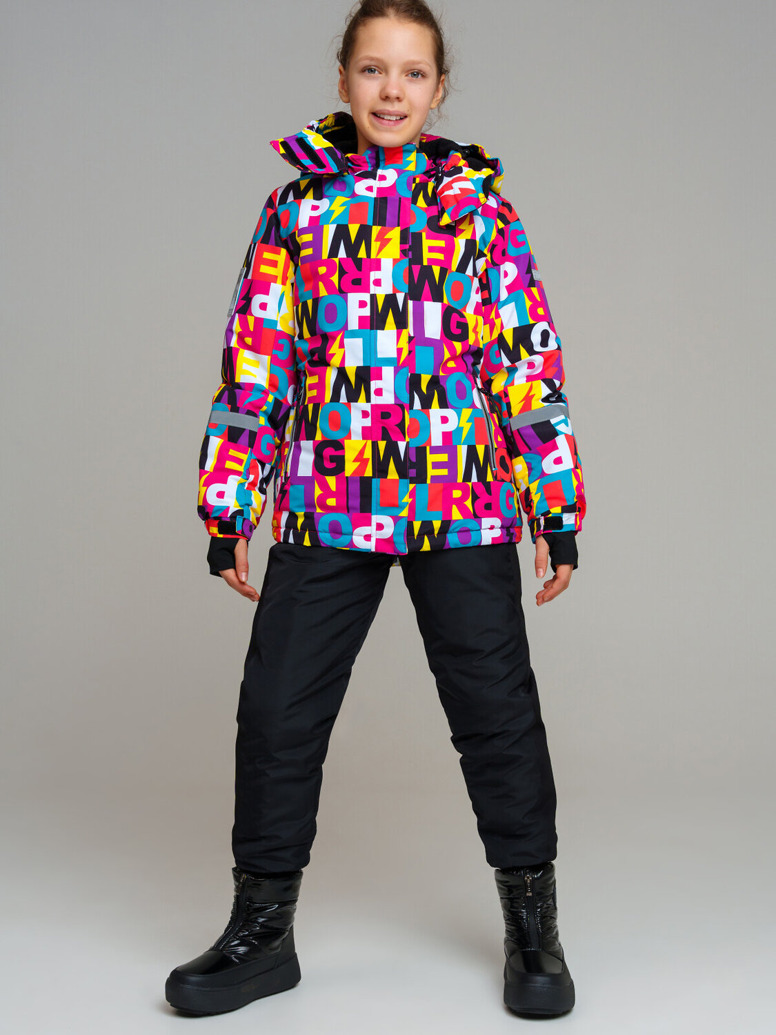 Мембранный материал делает этот яркий и модный комбинезон непромокаемым: мембрана не пропускает влагу снаружи, но выводит её изнутри, что крайне важно во время подвижных игр и занятий спортом.