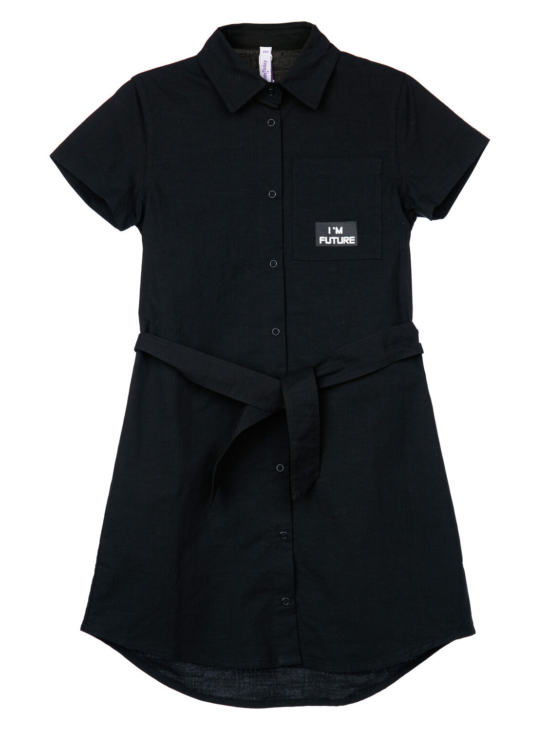 Платье-рубашка из поплина. Застёжка на кнопки. По талии пояс.