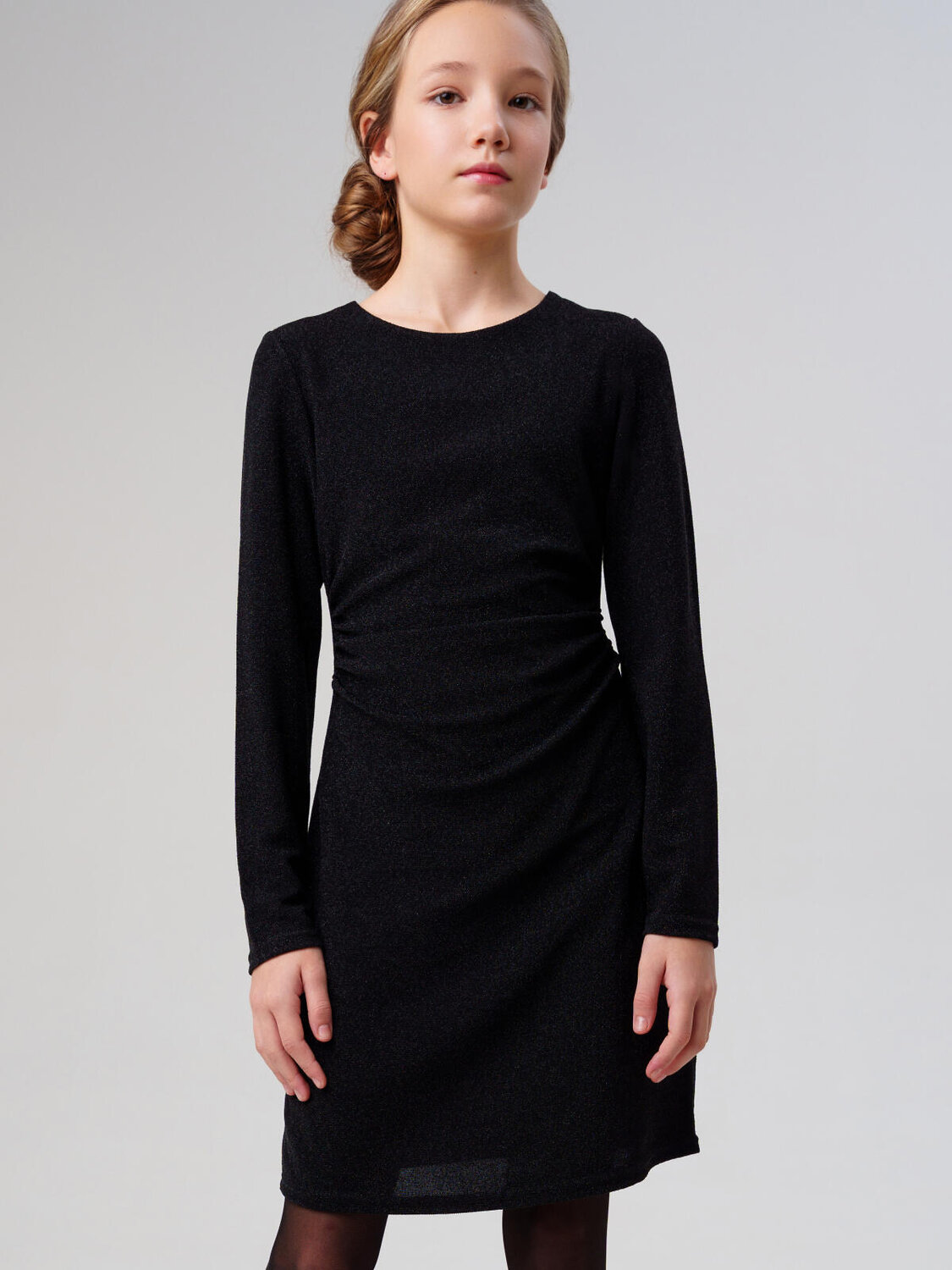 Стильное трикотажное платье для девочки подростка от PlayToday — нарядная модель с люрексом.