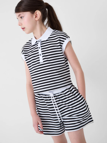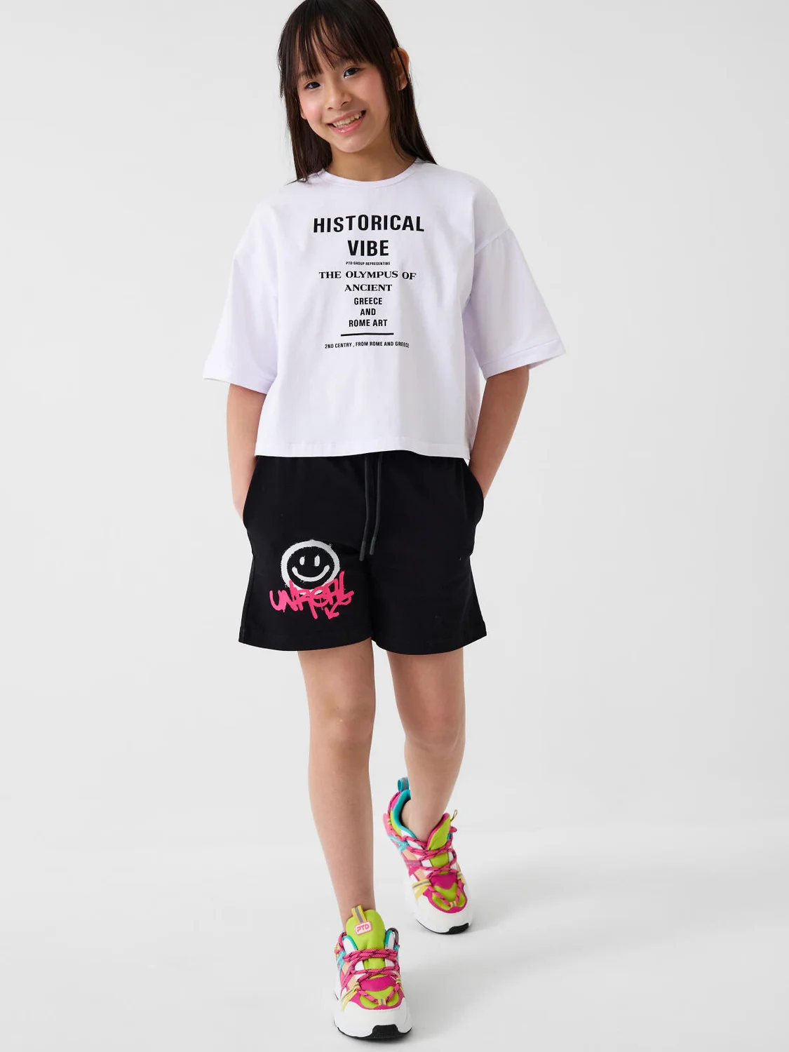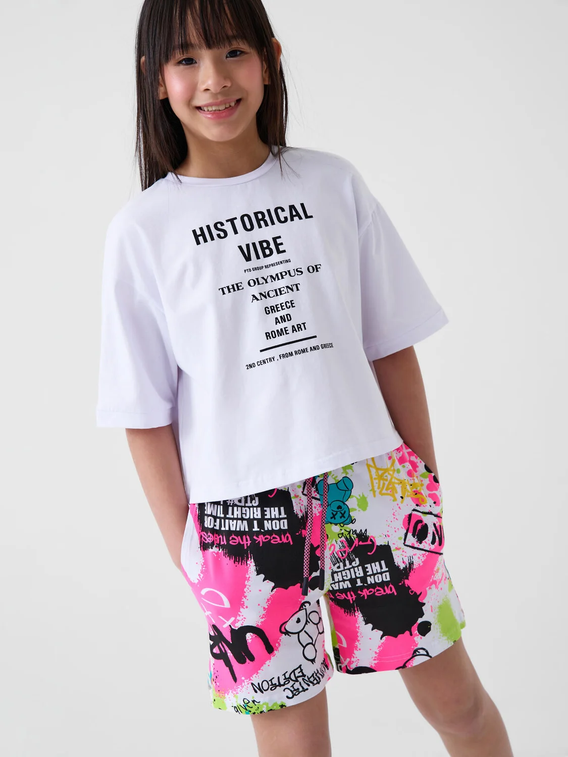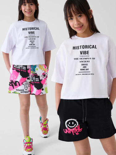 Набор шорт для девочки подростка. В комплект входят две пары шорт свободного кроя, в длине мини. Модели из мягкого, хлопкового трикотажа джерси. Удобная посадка обеспечивается эластичным поясом со шнуром. По бокам расположены два кармана.