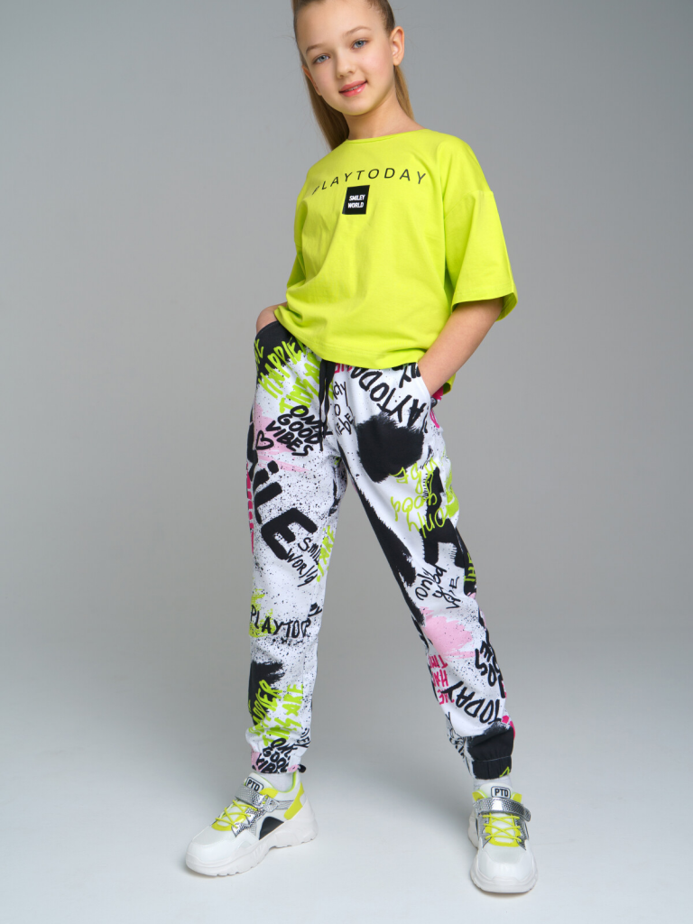 Брюки трикотажные для девочек разноцветный 12321533