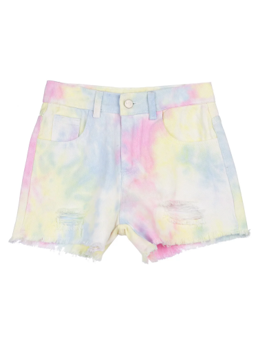Джинсовые шорты из качественного денима. Хлопок 100%. Посадка comfort fit – свободный крой. Застежка на молнию и болт. Функциональные карманы. Тай дай – принт, благодаря особенности техники нанесения которого, рисунки получаются неповторимыми.