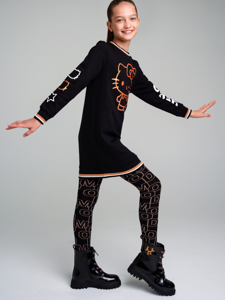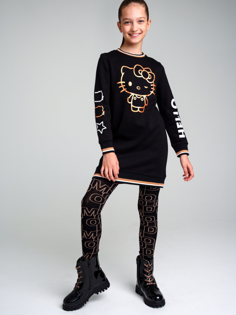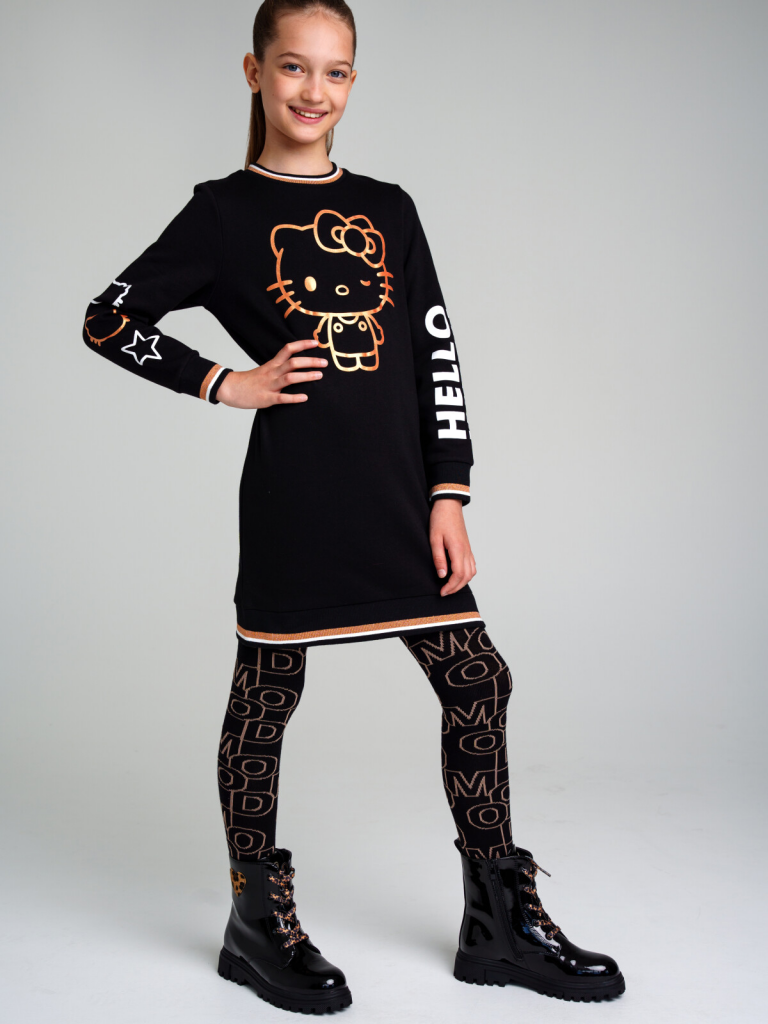 Платье трикотажное для девочек черный,белый,золотистый 32341023