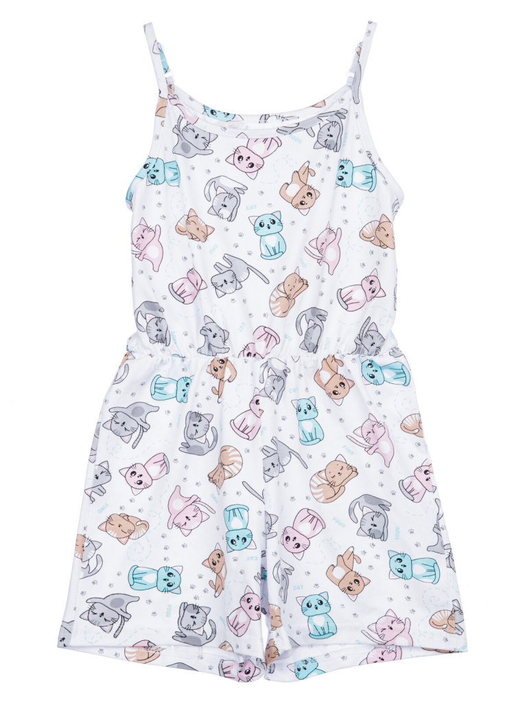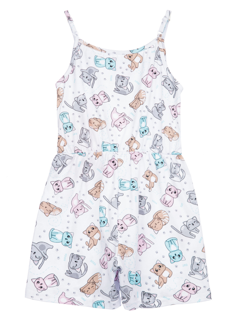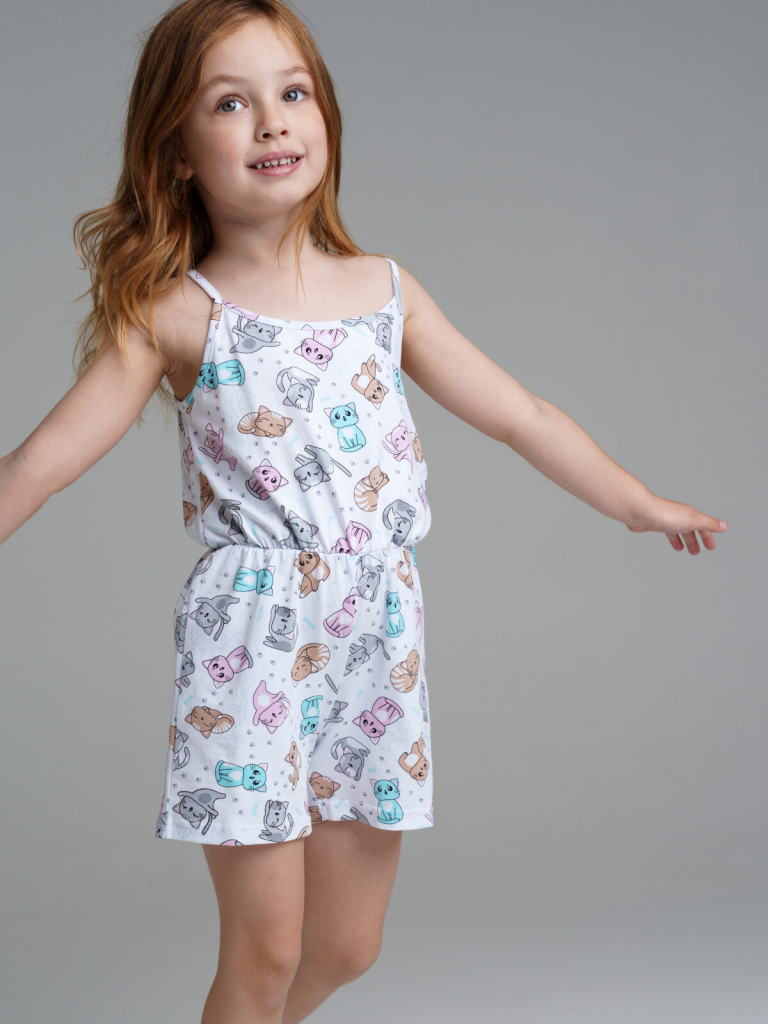 Комбинезон из трикотажа. Высокое содержание хлопка 93%. Благодаря наличию эластана в составе ткани, изделие проще в уходе и держит форму. Узкая резинка по талии. Регулируемые бретели.