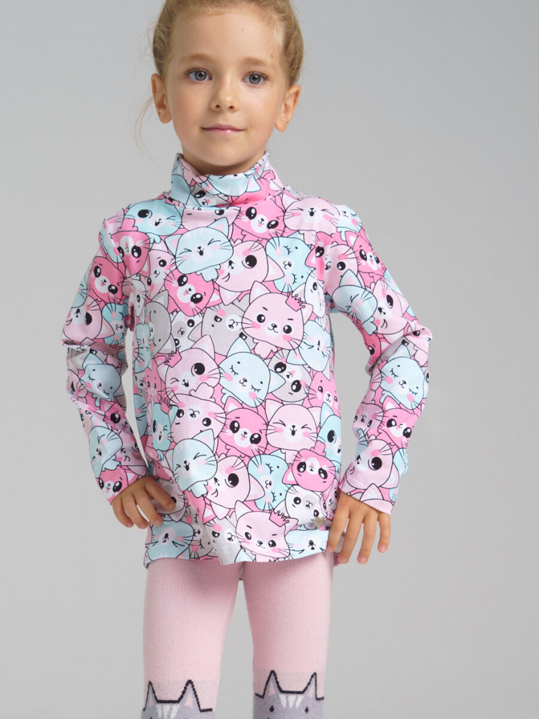 Водолазка из качественного приятного на ощупь трикотажа. Размер изделия на фото - 110, параметры модели (см): рост 110, обхват груди-талии-бедер: 55-52-53. Воротник двойной, с загибом. Высокое содержание хлопка 95%. Благодаря наличию эластана в составе ткани изделие держит форму и меньше мнется. 95% хлопок, 5% эластан.