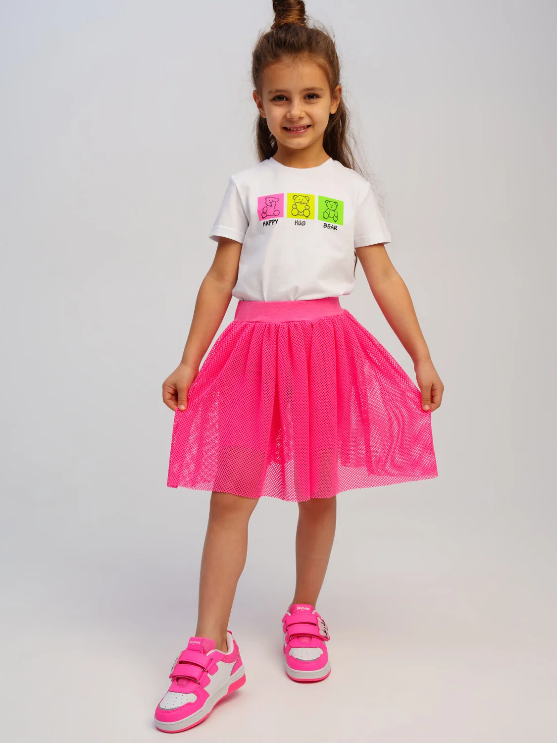 Юбка-шорты детские для девочки. Юбка-шорты из качественного и приятного на ощупь трикотажа джерси. Шорты на резинке со шнурком. Высокое содержание хлопка. Декор из сетки. Модель выполнена из качественного и приятного на ощупь трикотажа.