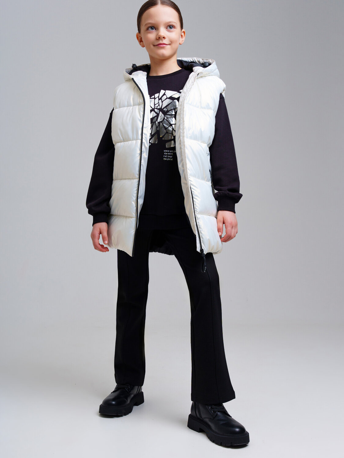 Жилет утепленный для девочки подростка. Температурный режим до +10°С*. Линия температурного режима X-LIGHT. Идеально подходит для весны и теплой осени. Материал верха с ветрозащитным и водоотталкивающим покрытием. Гладкая подкладка максимально комфортна для надевания изделия. Внутренняя ветрозащитная планка. Два боковых кармана на молнии. Внутренний карман на липучке. Капюшон несъемный, регулируемый утяжкой со стопперами.