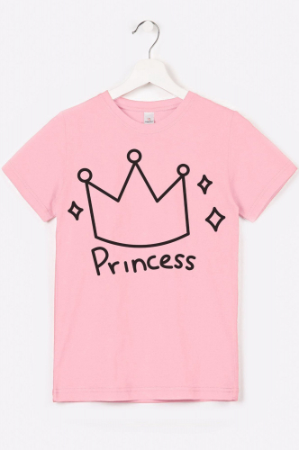 Детская футболка для девочки с принтом Корона и надписью выполнена в удобном прямом крое с короткими рукавами и круглой горловиной. Нежная ткань кулирная гладь из 100% хлопка обеспечит необычайную мягкость.