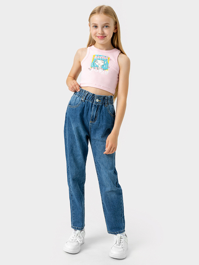 Джинсовые брюки средней посадки для девочек, выполненные из высококачественного хлопка с добавлением полиэстера. Свободное облегание по бедрам, удобная резинка на талии, застежка на пуговицу. Отличная модель, которая поможет при создании актуальных образов. Джинсы детские хорошо тянутся и подойдут практически на любую фигуру. Сочетаются с любым видом одежды и обувью. Красивые и стильные, с ними без труда можно собрать массу разных образов для повседневной носки. Широкий размерный ряд, симпатичные базовые расцветки. Рекомендуем для вашей малышки!
