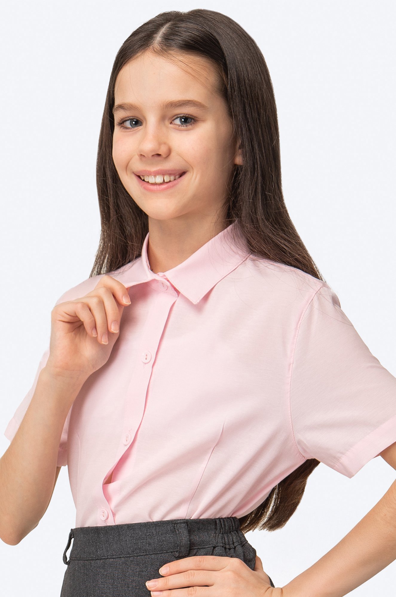 Базовая розовая детская рубашка для де..показатьвочек и девочек-подростков выполнена из приятного к телу хлопка. Однотонная школьная блузка для детей не стесняет движений благодаря удобному приталенному крою. Аккуратный отложной воротник, классическая застежка на пуговицы и короткий рукав делают образ сдержанным и опрятным. Блузка выполнена из легкой ткани даркон, которая отлично пропускает воздух и позволяет телу дышать. Благодаря полиэстеру в составе рубашка отлично сохраняет форму после многократных стирок.