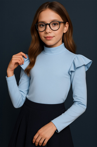 Нарядный трикотажный бадлон подойдет для школы. Хлопковая водолазка с воланами станет отличным решением для праздников.