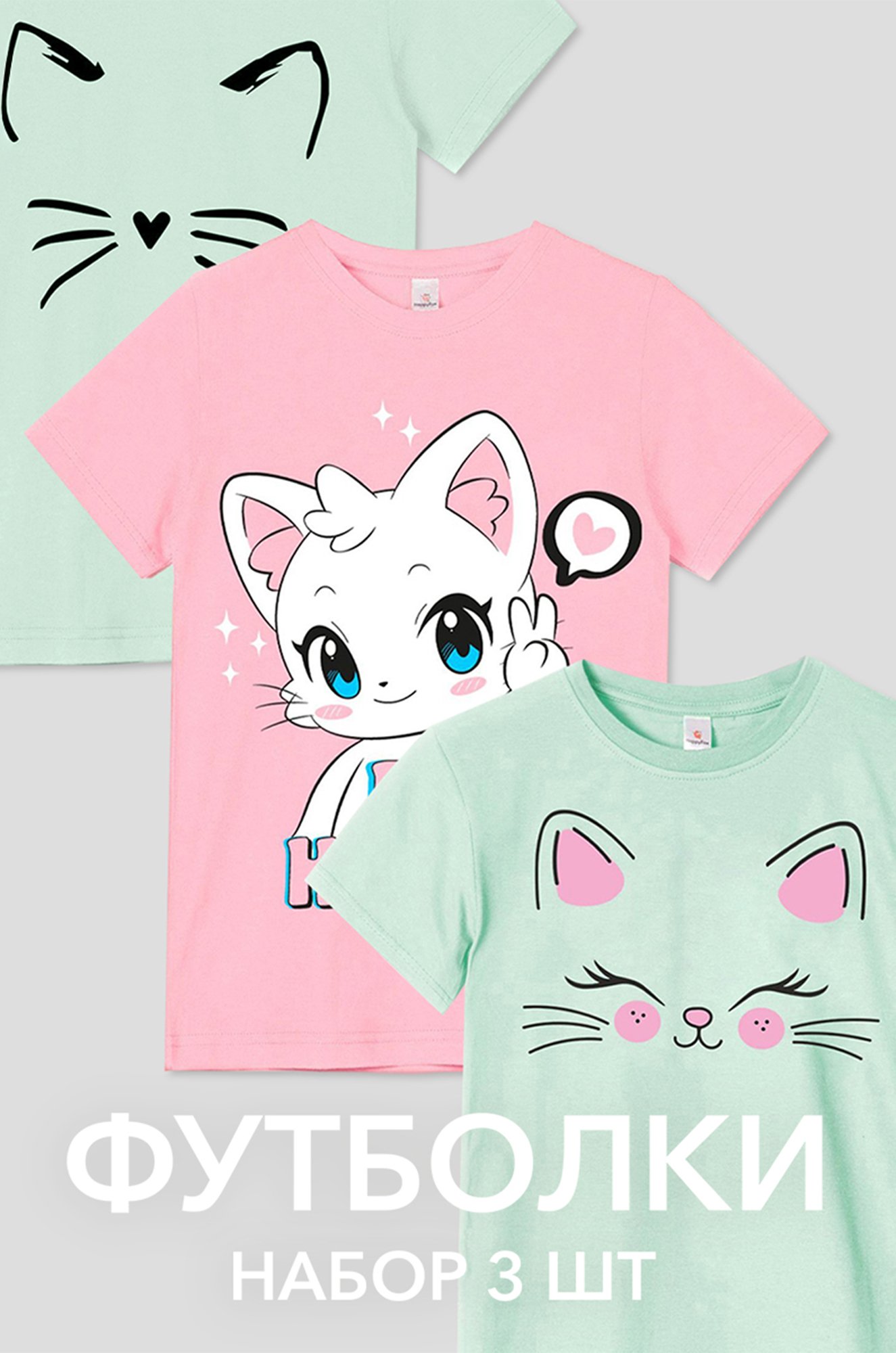 Футболка с принтом выполнена из легкой трикотажной ткани кулирная гладь, которая идеальна для лета. Повседневная футболка с коротким рукавом станет классной основой для образов на любой случай! Хлопковая футболка из трикотажа подойдет для детского сада. Комплект футболок из 3 шт. подойдет даже для самых озорных девчонок!