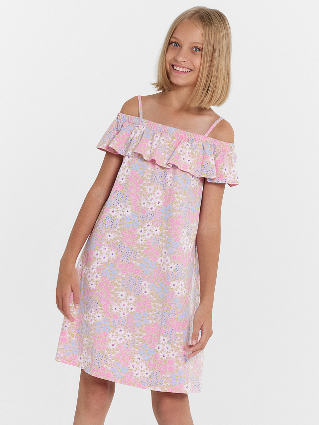 Очаровательный летний сарафан А-силуэта на тонких бретелях для девочек. Одной из главных изюминок является декоративный волан со сборкой, элегантно украшающий плечевую зону. Этот нежный и изящный акцент придает наряду особую женственность и привлекательность. Тонкие бретели обеспечивают максимальный комфорт и свободу движений, позволяя чувствовать себя легко и непринужденно. Высококачественный хлопок гарантирует долговечность и практичность изделия. Универсальная длина выше колена делает этот детский сарафан идеальным выбором как для прогулок, отдыха и повседневной носки. Станет настоящей находкой для юных модниц. Рекомендуем!