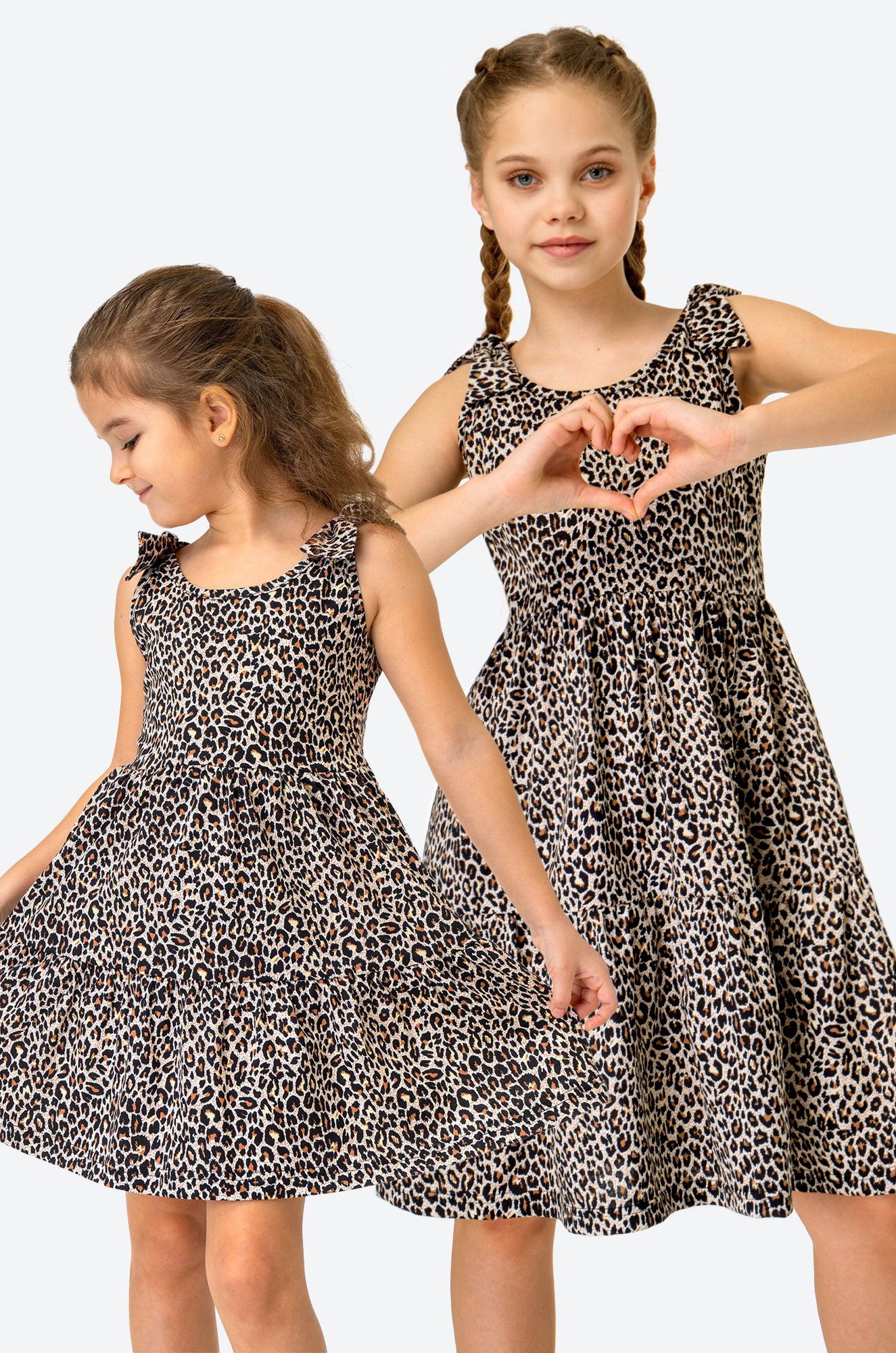 Один сарафан – море ярких эмоций! Леопардовое детское платье для девочек и девочек-подростков выполнено из натурального 100% хлопка. Свободный крой, вырез капелька на спинке, удобные завязки на плечах – каждая деталь создана для комфорта ребенка. Благодаря воздушным сборкам на юбке и анималистичному принту летнее платьице для детей поможет создать яркий образ.