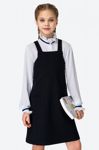 Детский сарафан для девочек и девочек-подростков выполнен из мягкого футера двухнитки. Комфортный А-силуэт, длина выше колена, аккуратные карманы – этот черный сарафан для детей точно станет любимым элементом школьной формы и покорит сердца окружающих!