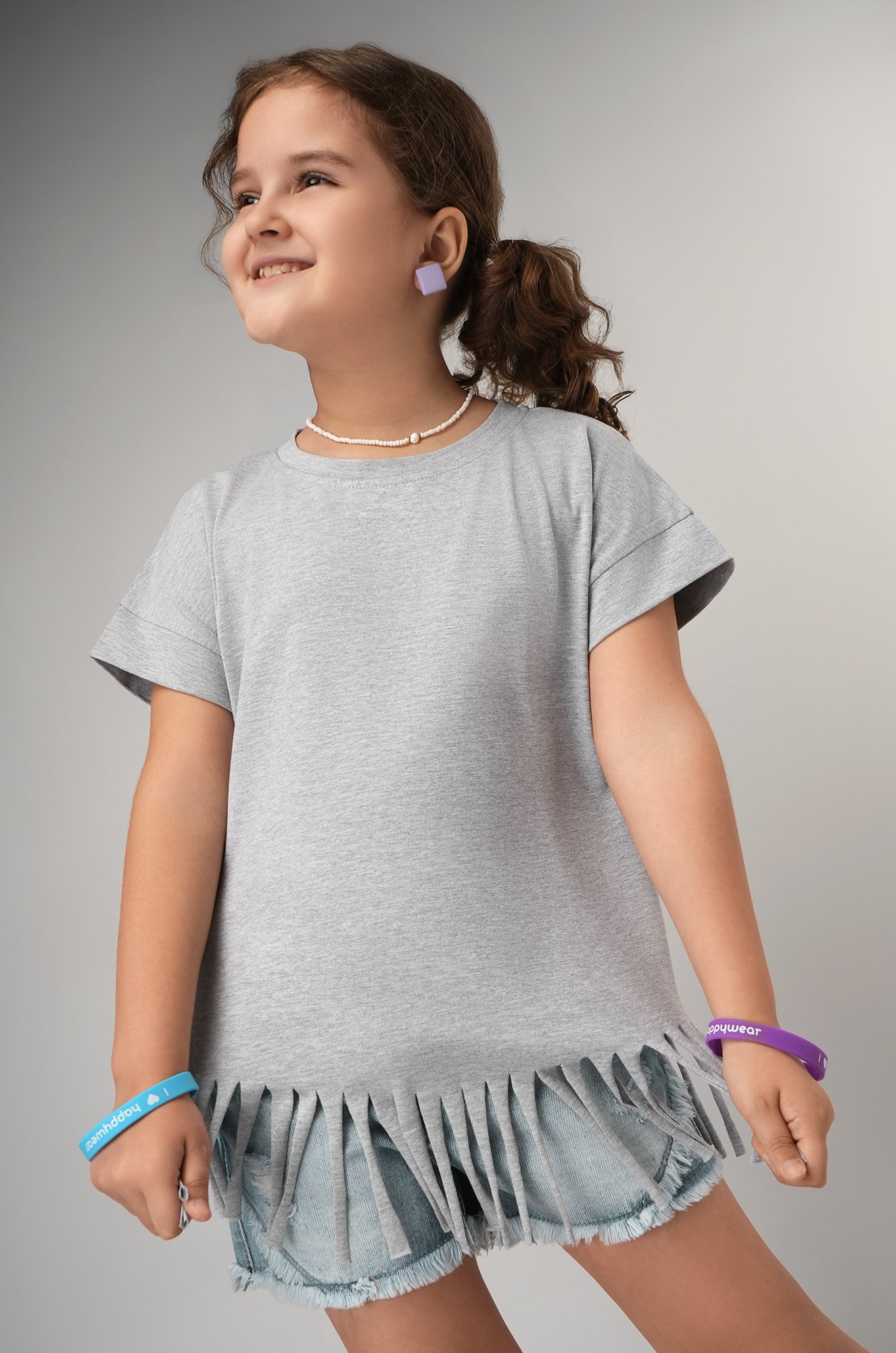 Детская футболка с оригинальной бахромой по низу — отличный выбор на каждый день. Хлопковая футболка для девочки и девочки подростка сочетает комфорт, стиль и практичность.
