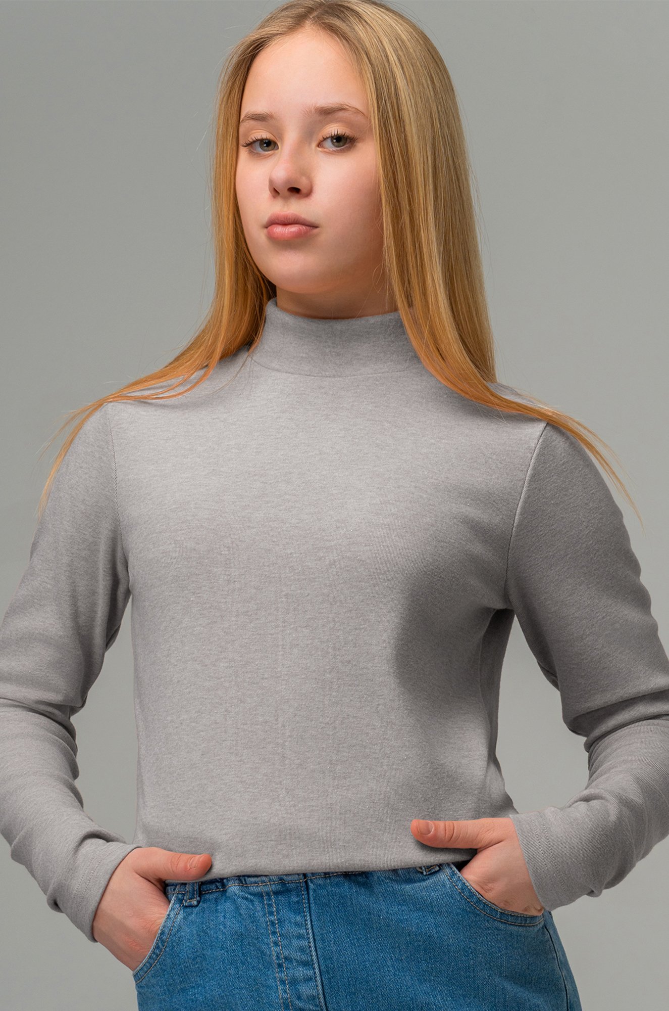 Длинные рукава и воротник-стойка прекрасно защищают в прохладные дни, а рубчик добавляет изящности. Однотонная серая водолазка легко сочетается с другими предметами школьного гардероба, что позволяет создавать новые стильные образы.